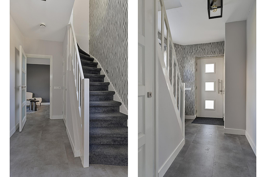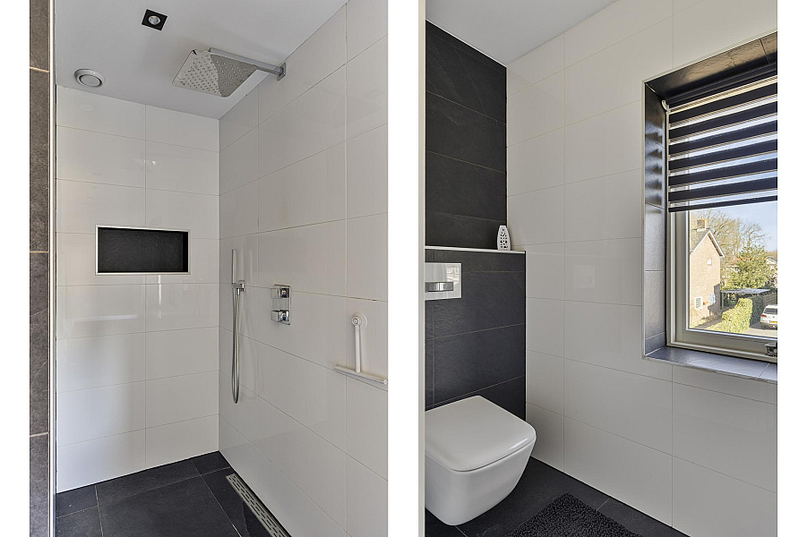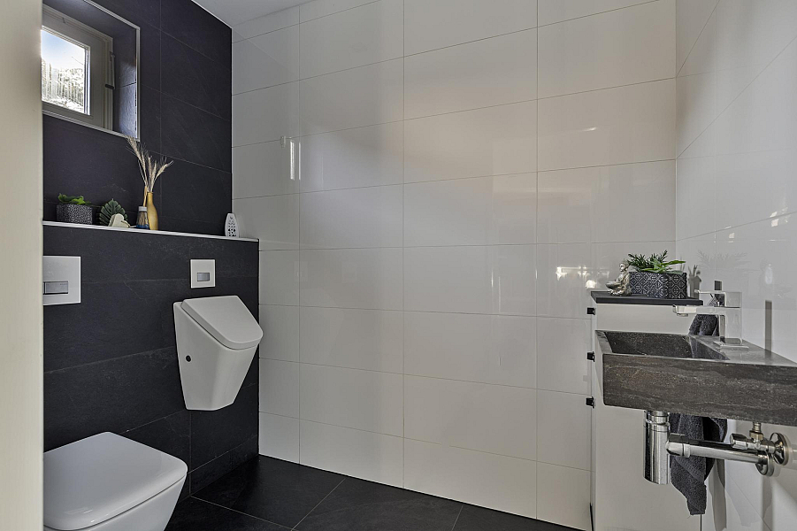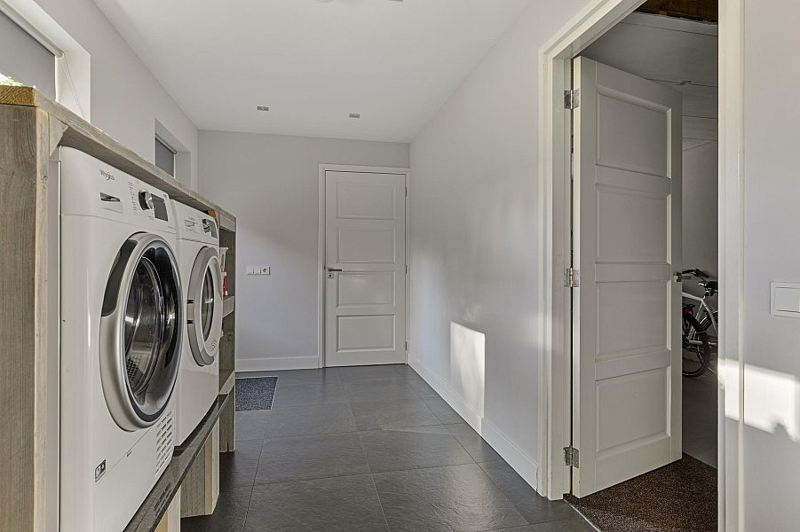 Zeer ruime bijkeuken met witgoedaansluiting en toegang naar het moderne toilet met urinoir. Tevens is hier toegang
