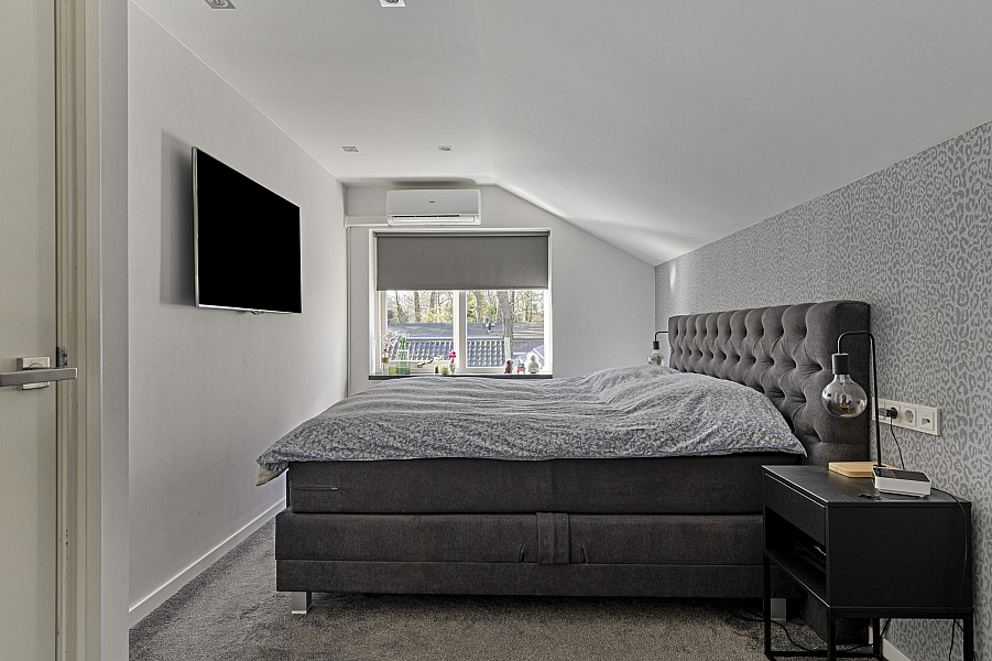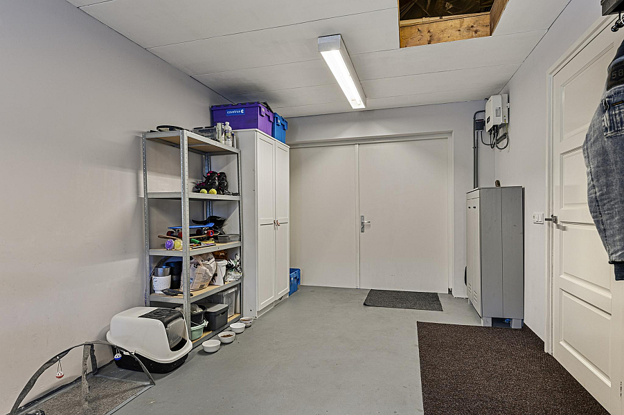 tot de geïsoleerde garage met zolder wat extra veel bergruimte biedt.
