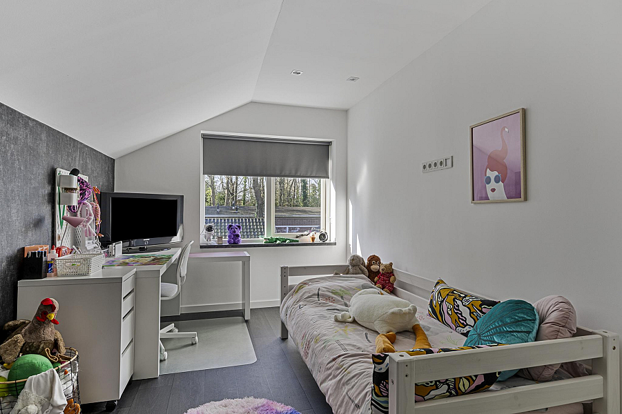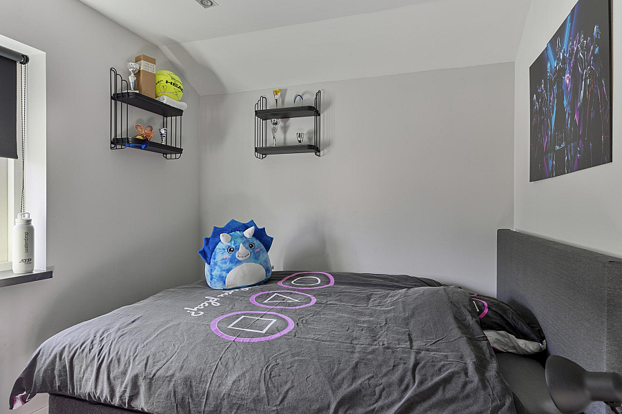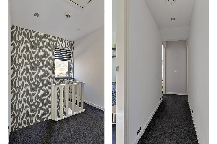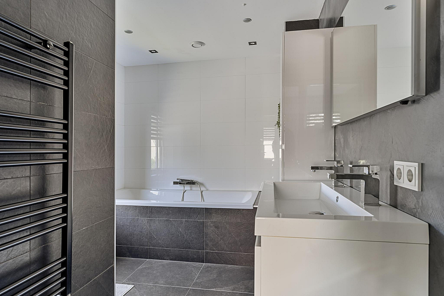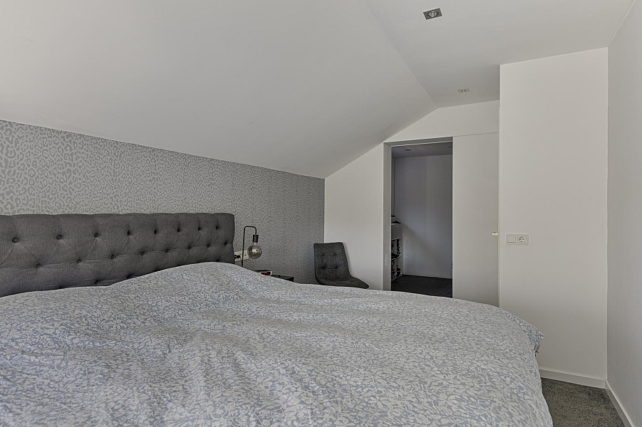 Verdieping: overloop met separaat toilet, 3 slaapkamers waarvan de ouderslaapkamer is voorzien van airco en een mooie inloopkast. De exclusieve badkamer is voorzien van een ligbad, inloopdouche, dubbele wastafel(meubel), designradiator en vloerverwarming.