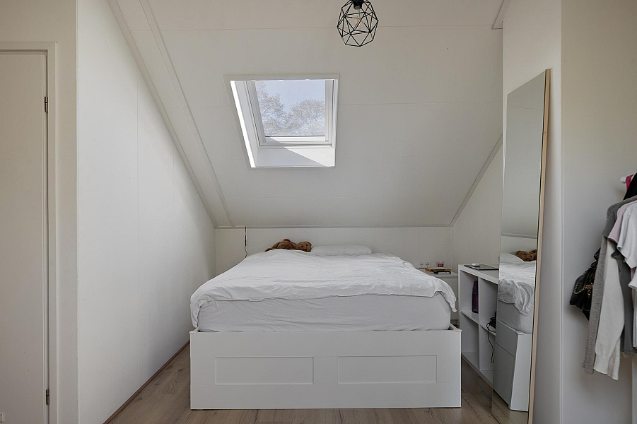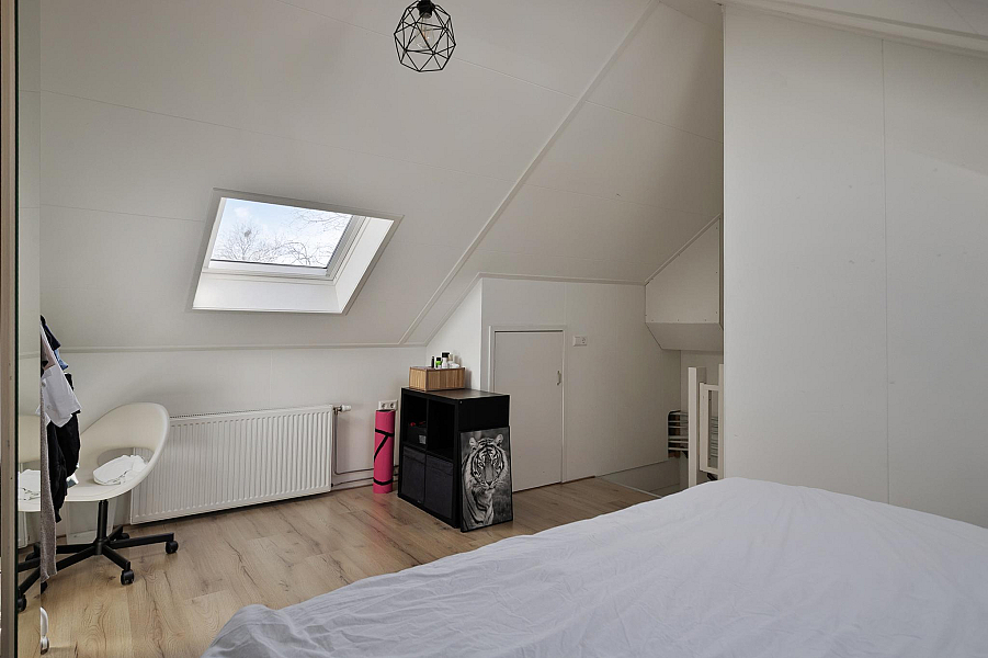 Zeer ruime vierde slaapkamer, voorzien van twee nieuwe dakramen. Tevens bevindt zich hier de opstelplaats voor de CV ketel (bouwjaar 2021) en is er bergruimte aanwezig.