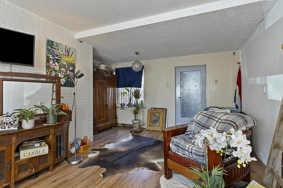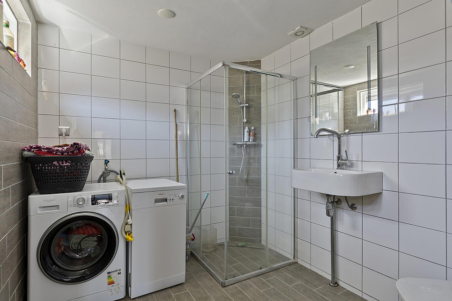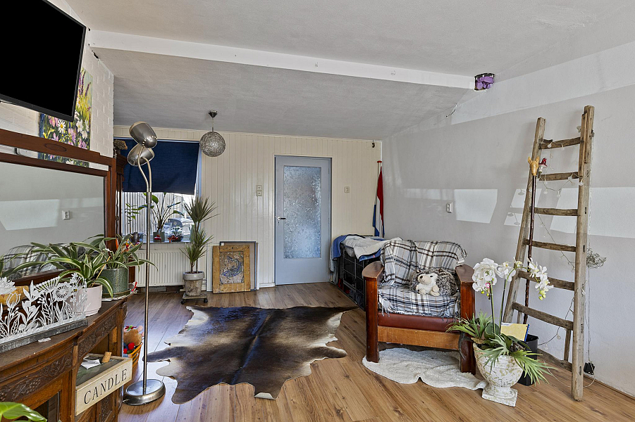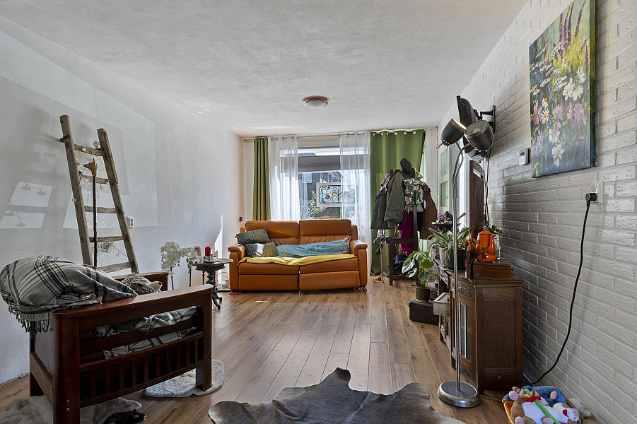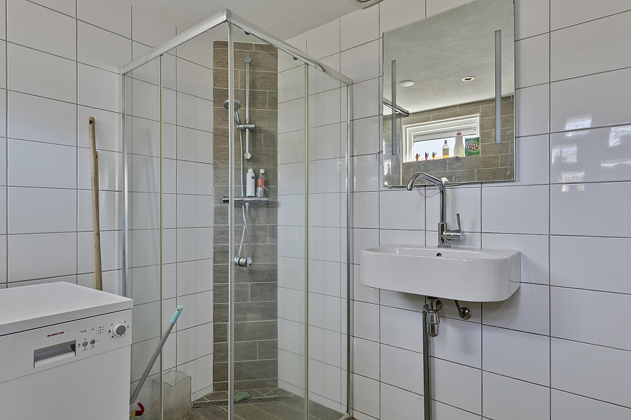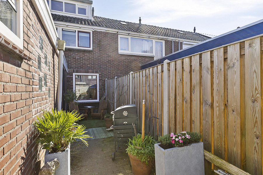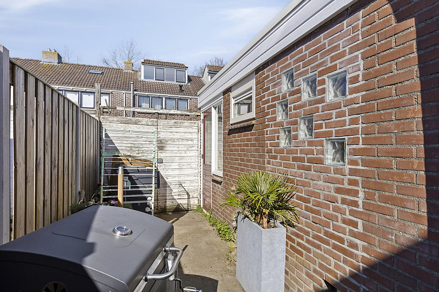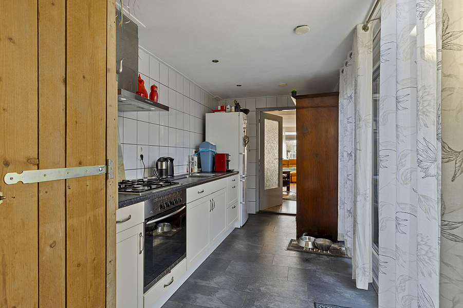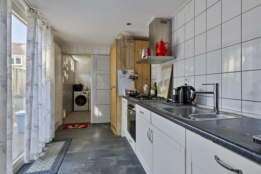 BEGANE GROND: Entree/hal met gloednieuwe kunststof voordeur, lichte woonkamer met veel lichtinval en provisiekast, aanbouw met ruime keuken met o.a. 4-pits gaskookplaat, afzuigkap en oven, doorgang naar de badkamer met douchecabine, vaste wastafel, toilet en wasmachine-aansluiting. Vanuit de keuken is er middels een schuifpui toegang naar de diepe stadstuin.