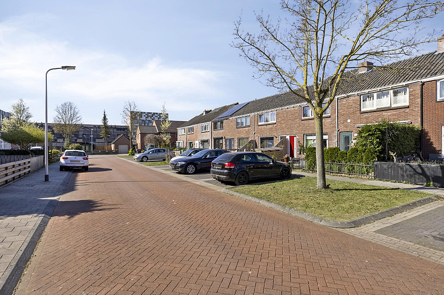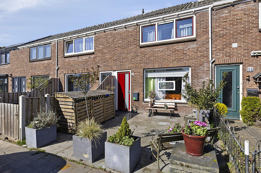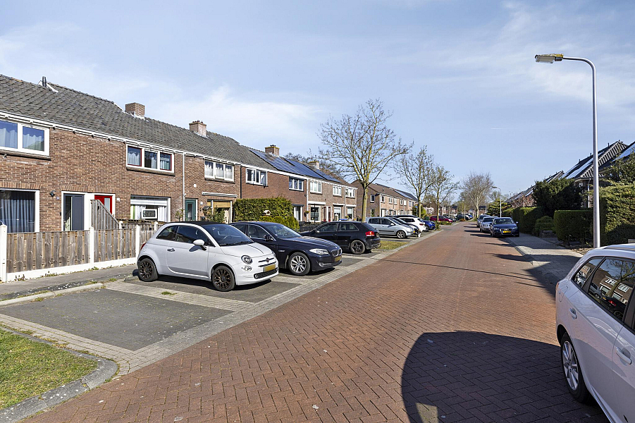 In een rustige straat in de woonwijk Ezinge nabij leuke speelweide, en op loopafstand van het centrum, sportvelden en het NS-station staat deze TUSSENWONING met stenen aanbouw, berging en tuin met achterom.