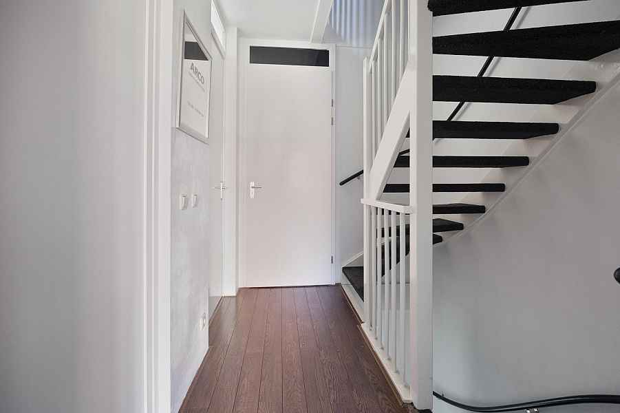 BEGANE GROND: Entree/hal met trapopgang naar de eerste verdieping, vernieuwde toiletruimte met toilet en fonteintje, straatgerichte open woonkeuken voorzien van grotendeels vernieuwde inbouwapparatuur (o.a. gaskookplaat, koelkast, vaatwasser, combi-oven en afzuigkap, tuingerichte vergrote woonkamer met openslaande tuindeuren naar de zonnige tuin welke veel privacy biedt. De begane grond is voorzien van een fraaie pvc-vloer en vloerverwarming.