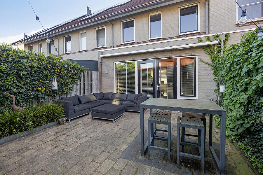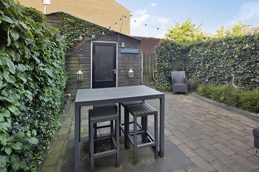 De achtertuin is gelegen op het zuidwesten en is ook middels een achterom bereikbaar.