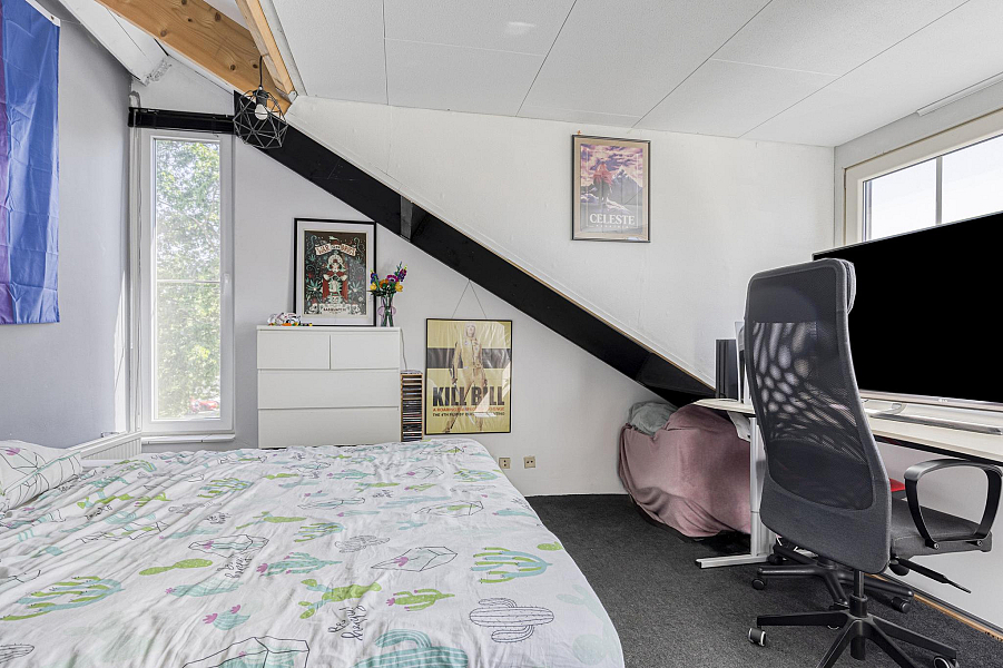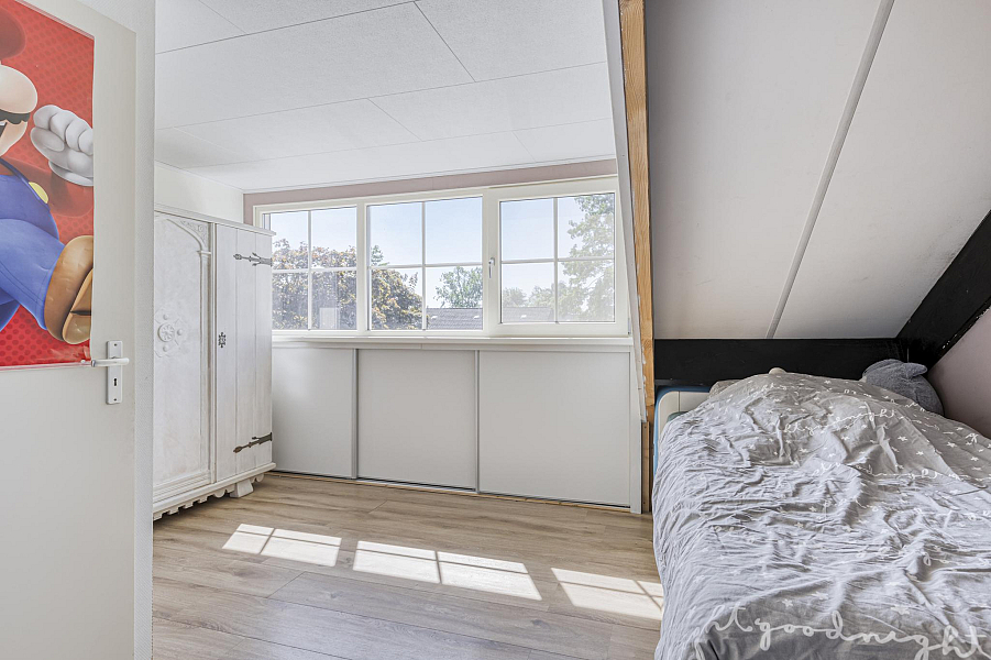 Op deze verdieping zijn er nog twee ruime slaapkamers van circa 11m2 en 13m2 met dakkapel, en veel bergruimte.