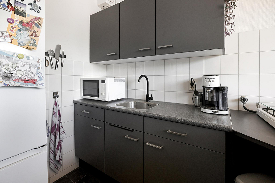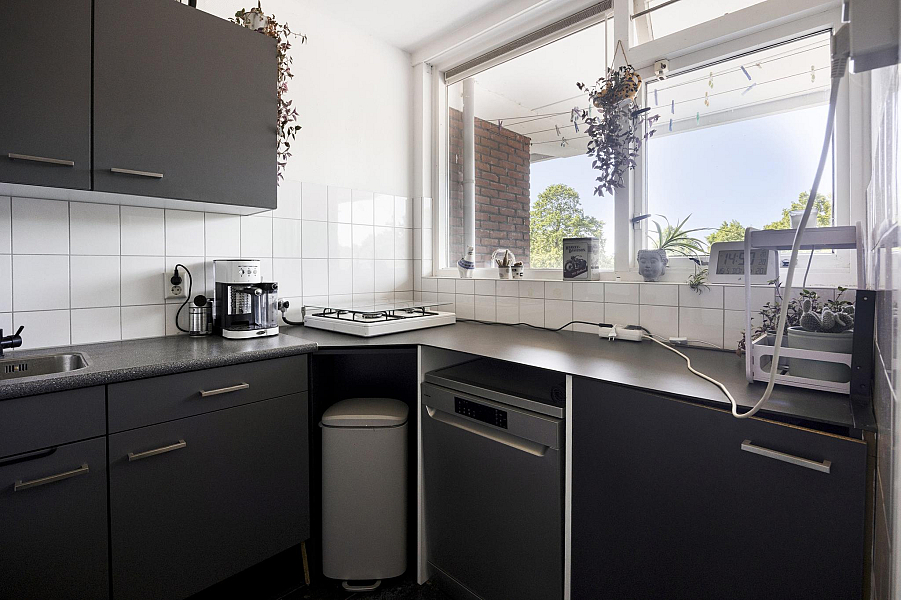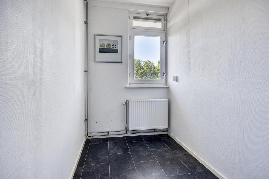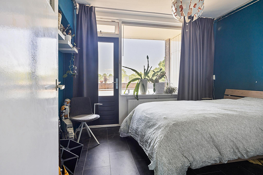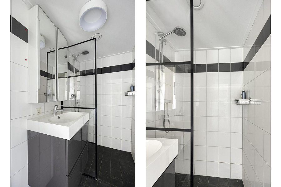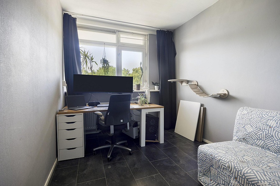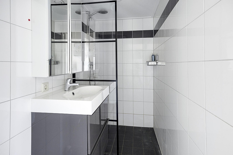 Het appartement beschikt over drie slaapkamers, ideaal voor een gezin, een stel dat extra ruimte zoekt, of iemand die thuiswerkt. De nette badkamer is uitgerust met een douche en wastafel en verkeert in verzorgde staat.