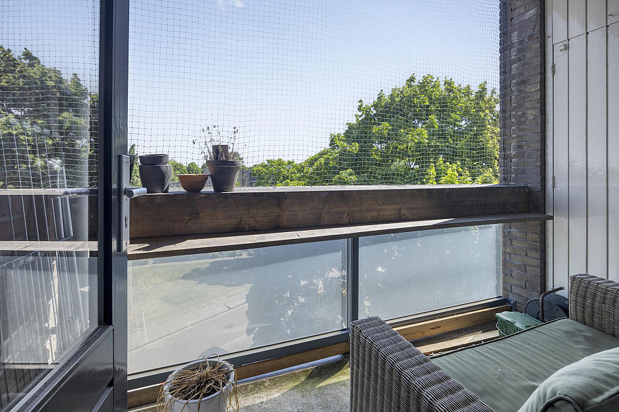 Je stapt binnen in de ruime hal welke toegang biedt tot alle ruimtes. De ruime woonkamer, voorzien van strak spanplafond, beschikt over een grote raampartij welke mooi uitzicht geeft over de woonwijk. Dankzij het balkon op het zuidoosten geniet je hier de hele ochtend en middag van de zon én een vrij uitzicht. Het balkon beschikt tevens over een handige berging. De keuken aan de voorzijde biedt volop werkruimte én een prachtig zicht op het Noorderpark.