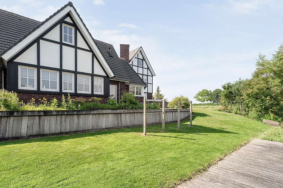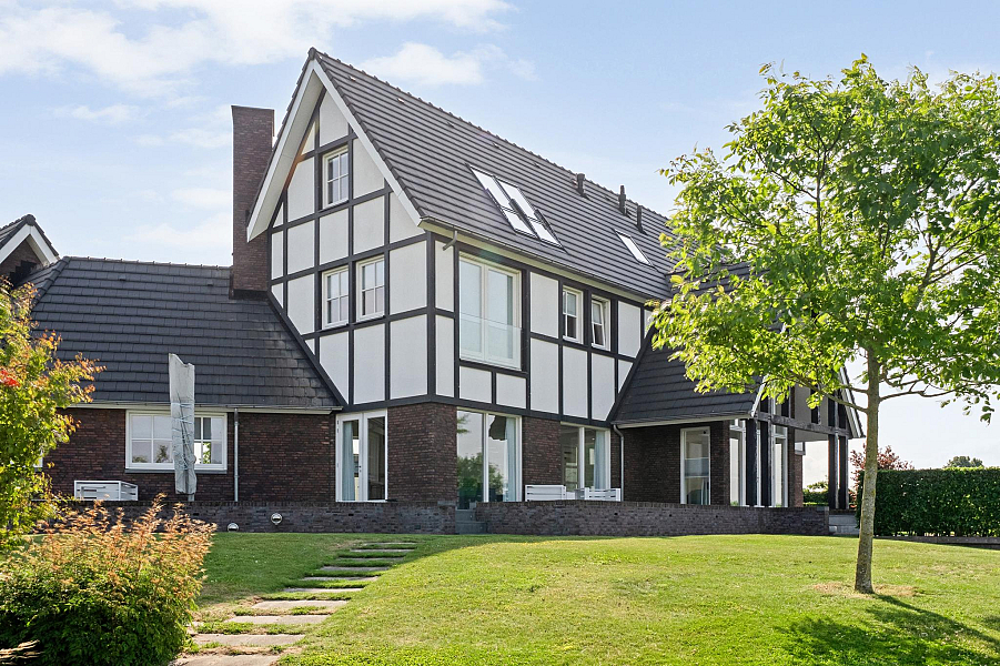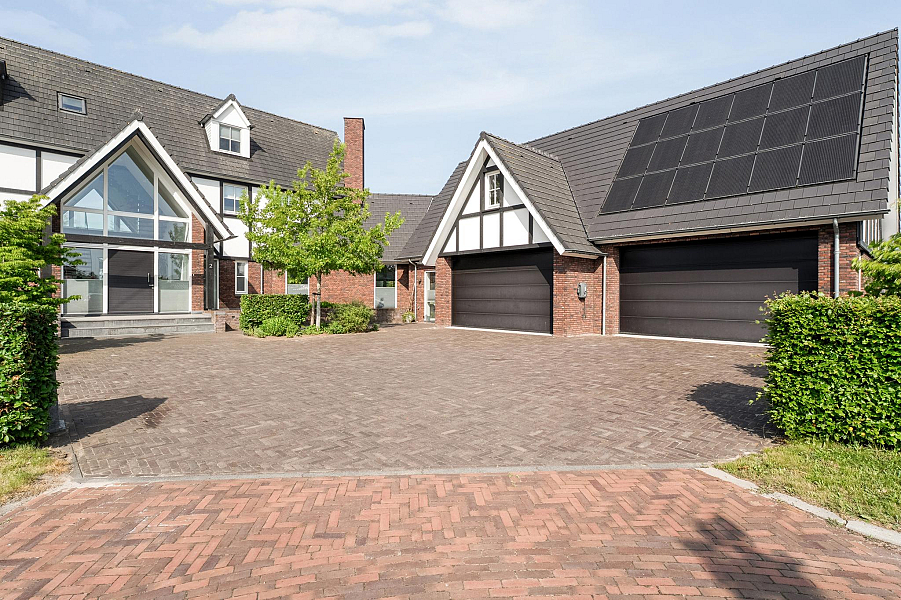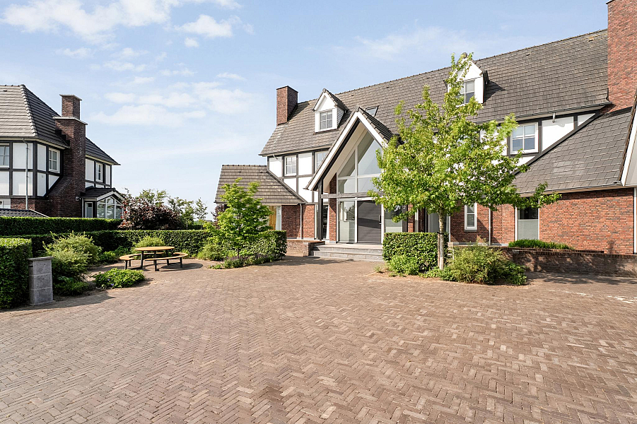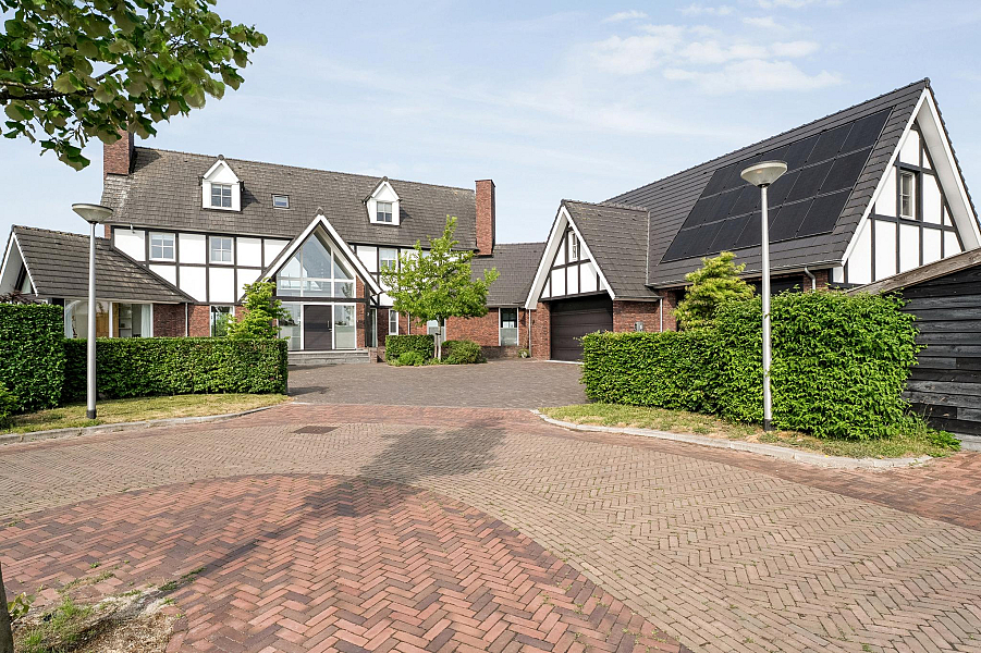 Deze royale vrijstaande woning (ca. 509 m²!!! woonoppervlak) is tot in detail doordacht en met zorg gebouwd voor het moderne gezin of de ondernemer die kwaliteit en comfort op waarde weet te schatten. Ook binnen heeft deze woning veel te bieden, waarbij vooral de lichtinval door de vele raampartijen opvalt, de royale woonkamer en maar liefst vier slaapkamers en de luxe en comfort, om zo maar een paar dingen te noemen. Dit landhuis is gebouwd in Vakwerk-stijl. Rijke overstekken, hoge plafonds, symmetrische bouw en een voordeur met in het midden de imposante hal geven dit pand grandeur!
