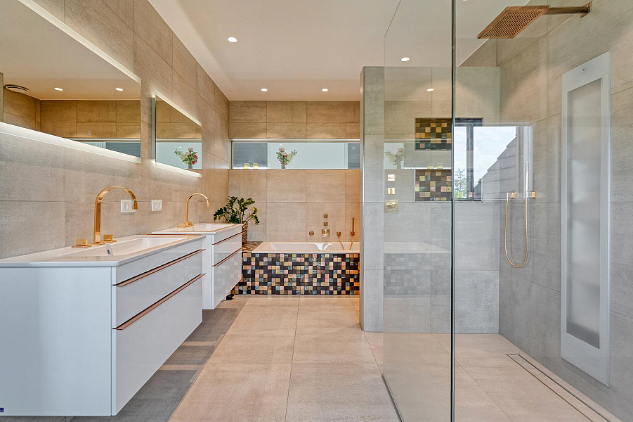 Dubbele garage volledig geïsoleerd en voorzien van vloerverwarming;