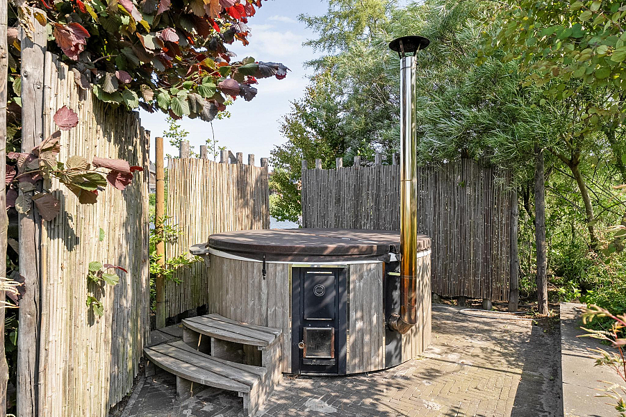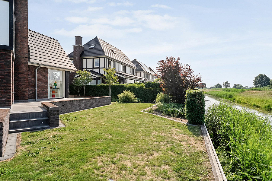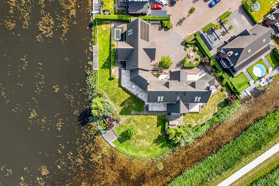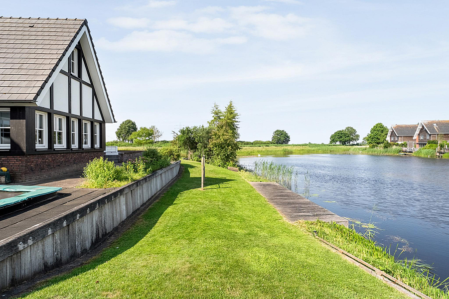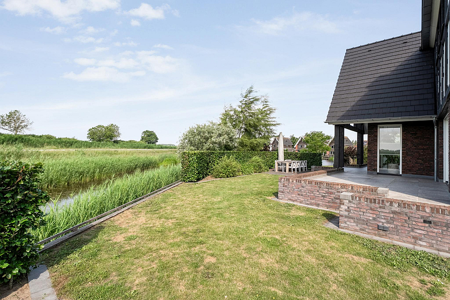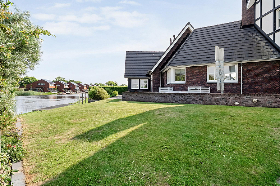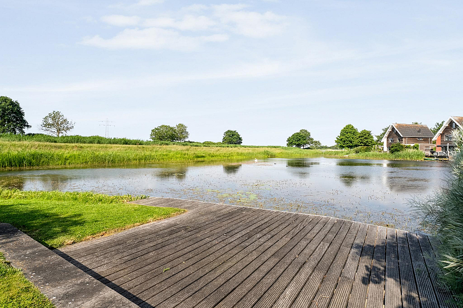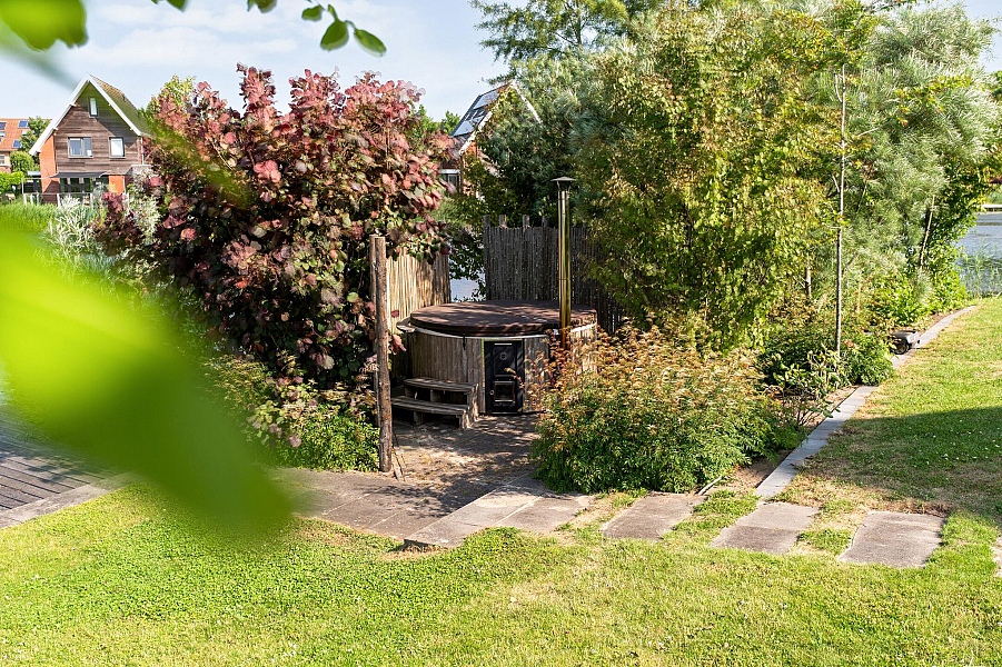 De ruime tuin, grenzend aan een waterpartij met nieuwe walbeschoeiing en aanlegsteiger, is voorzien van diverse terrassen. De tuin gelegen op het op het zuidwesten biedt u van 's-morgens vroeg tot 's-avonds laat volop zon!