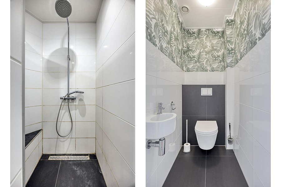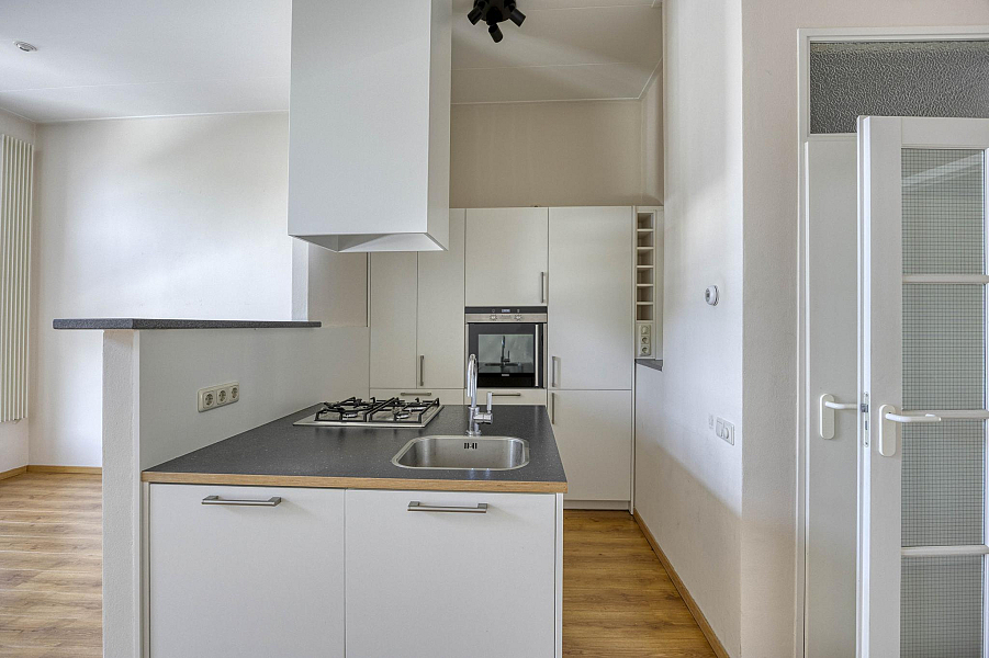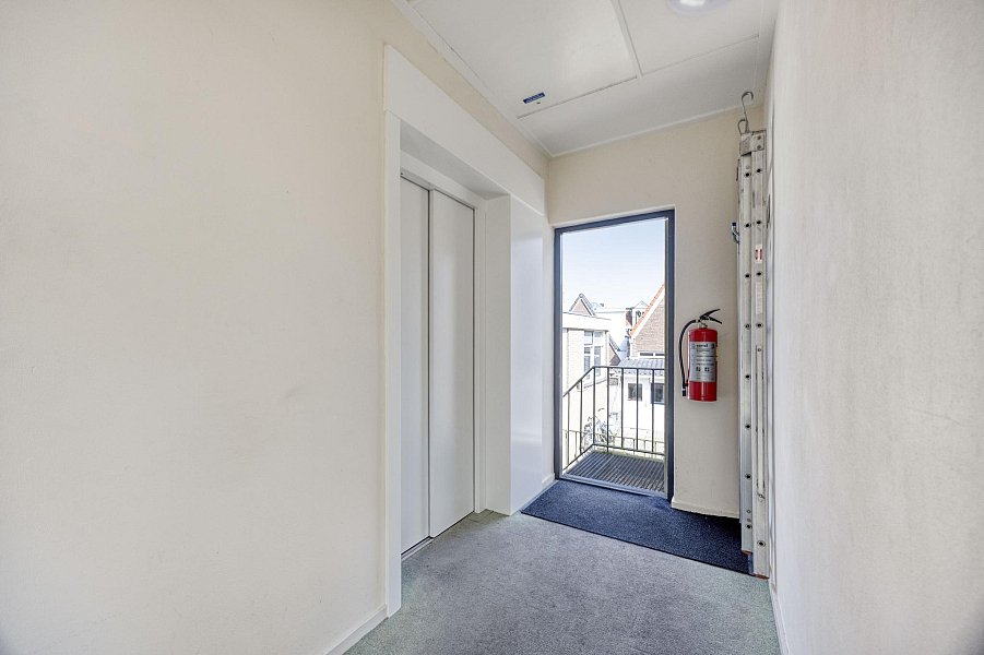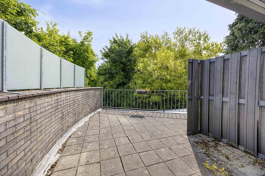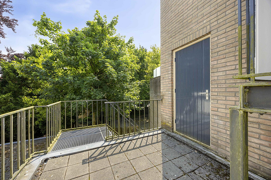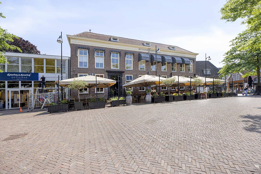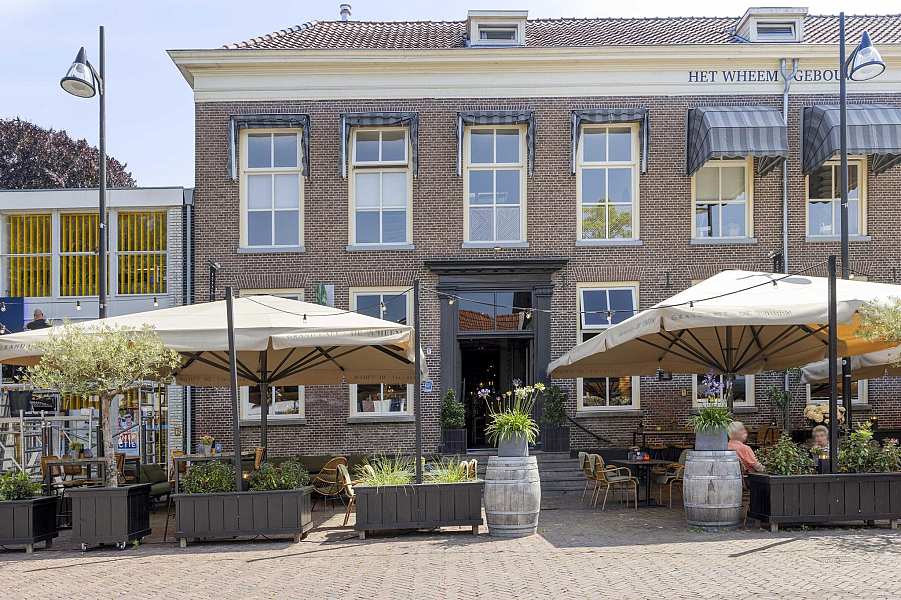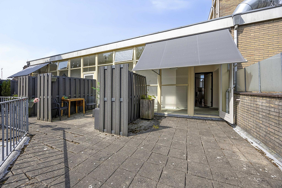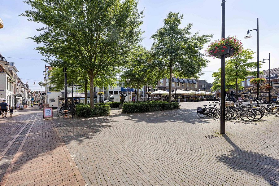 De woonkamer biedt een schitterend uitzicht over het voorgelegen plein "De Wheem", terwijl u in alle rust aan de achterzijde op uw eigen dakterras kunt genieten van de rust en uitzicht heeft over de achtergelegen groene bomen en struiken. Een unieke combinatie van het genot van het centrum en tegelijkertijd ook van de rust en privacy.