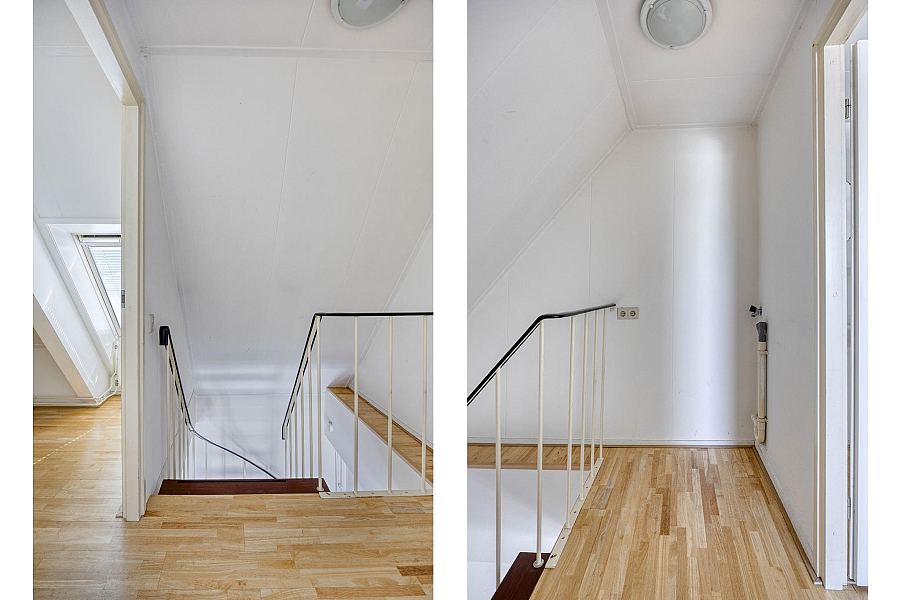 Overloop met was aansluiting en toegang tot de twee slaapkamers. De masterbedroom is voorzien van een wastafel en veel opbergruimte door middel van vaste kasten.