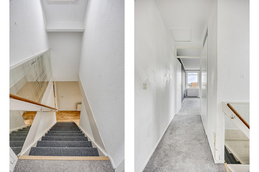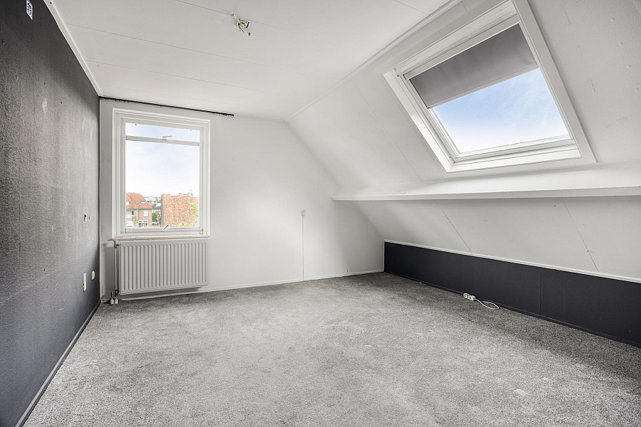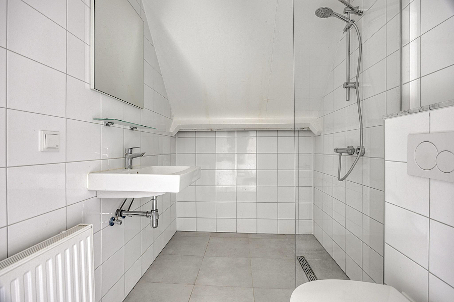 Vanuit de hal bereik je via de trap de tweede verdieping van het appartement. Hier bevinden zich twee ruime slaapkamers en een nette badkamer welke is voorzien van een douche, wastafel en tweede toilet. Zowel vanaf de overloop, als de slaapkamer aan de achterzijde, heb je via een luik toegang tot de bergzolder.