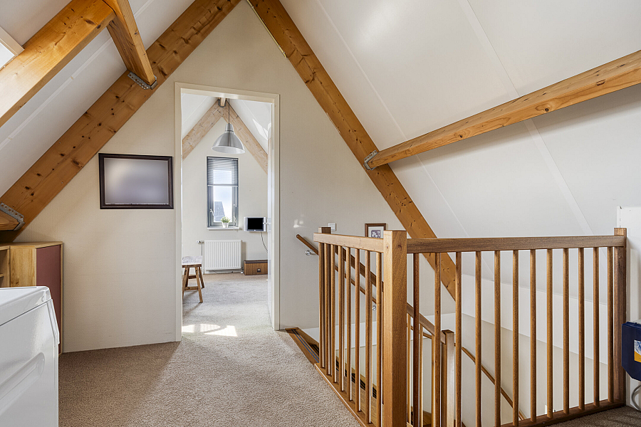 Overloop, 2 slaapkamers (circa 13 en 10 m2), wasruimte, cv-ruimte (HR combiketel 2020) en berging.