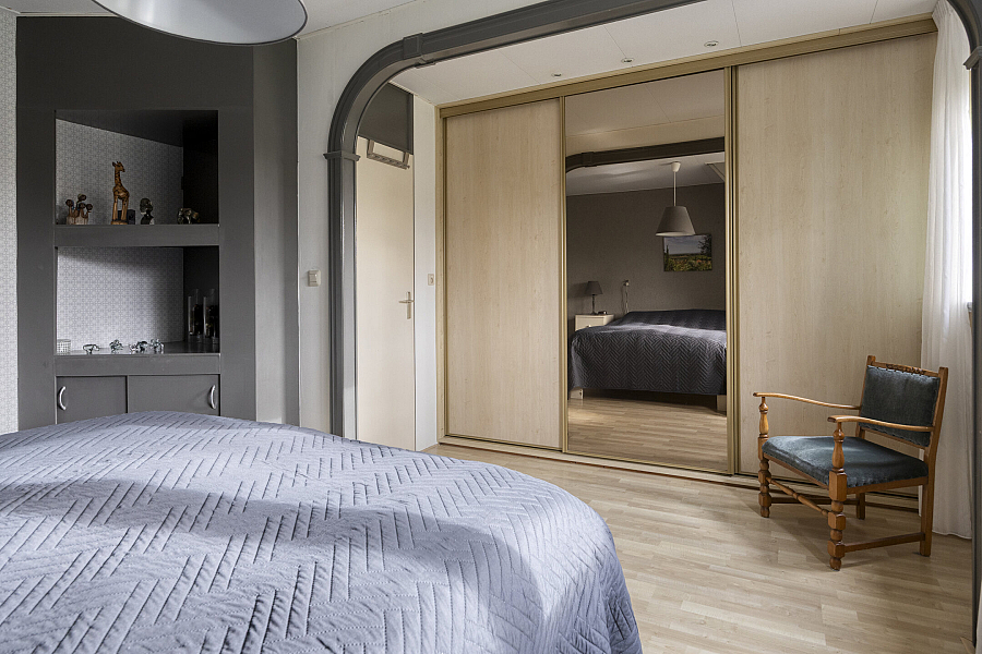 Via een vaste trap bereik je de tweede verdieping met een extra slaapkamer en veel bergruimte achter de knieschotten.