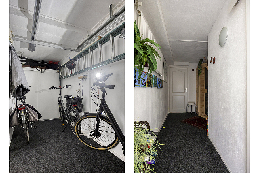- Garage verbouwd tot berging, tussenhal en bijkeuken