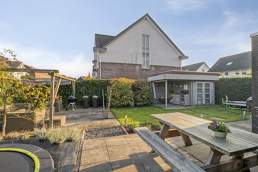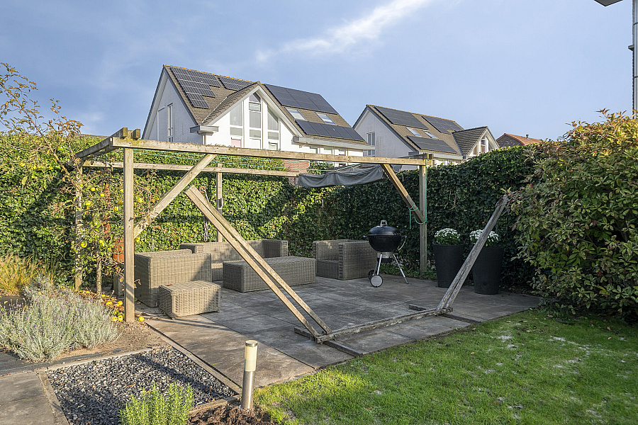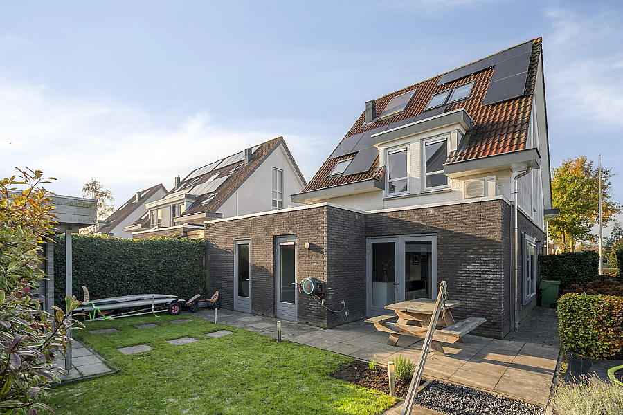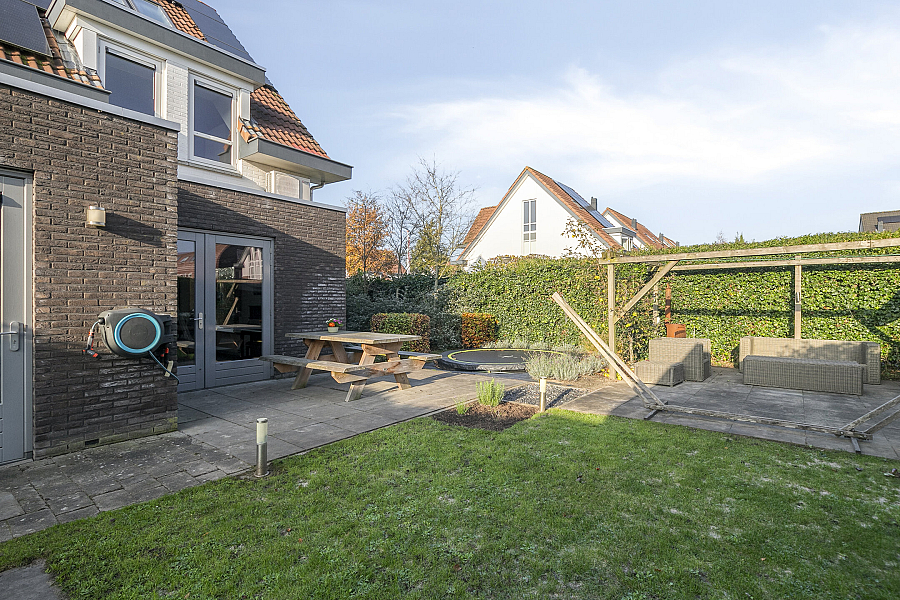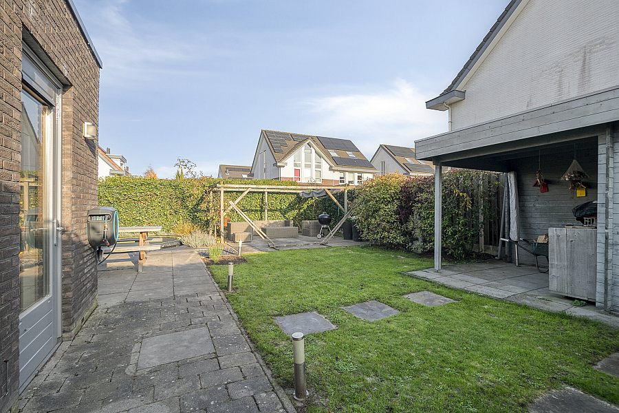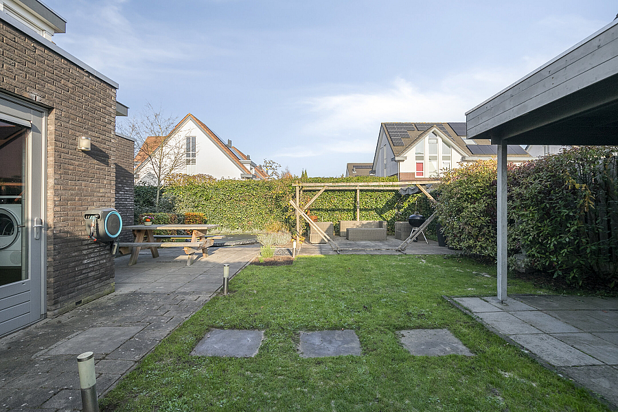 De tuin is ruim, verzorgd en voorzien van een fijne overkapping. Op de oprit is plaats voor minimaal drie auto’s, en de woning beschikt over een laadpaal en waterontharder. Dankzij 23 zonnepanelen is de woning bovendien energiezuinig en duurzaam.