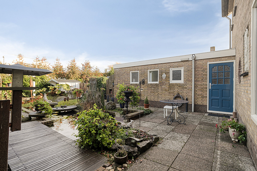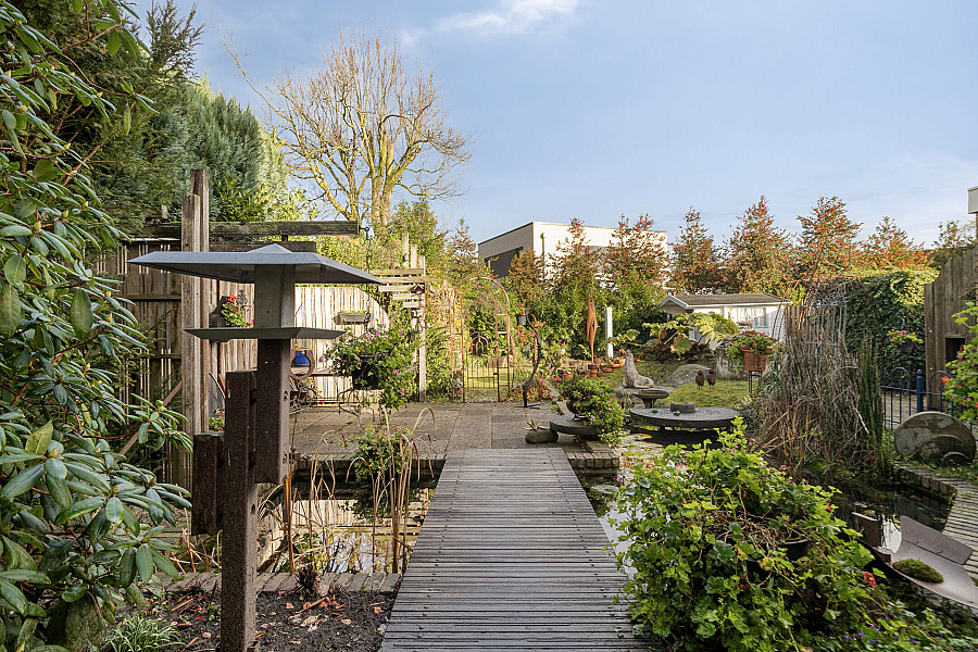 Tuin: De rondom gelegen tuin is prachtig aangelegd en biedt meerdere sfeervolle zithoekjes, een vijver en een gevarieerde beplanting met bomen, struiken en bloemen. Of je nu wilt ontspannen, tuinieren of spelen met de kinderen, hier vind je volop mogelijkheden.