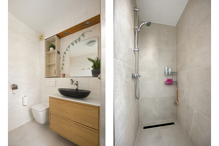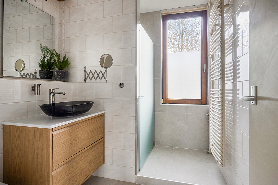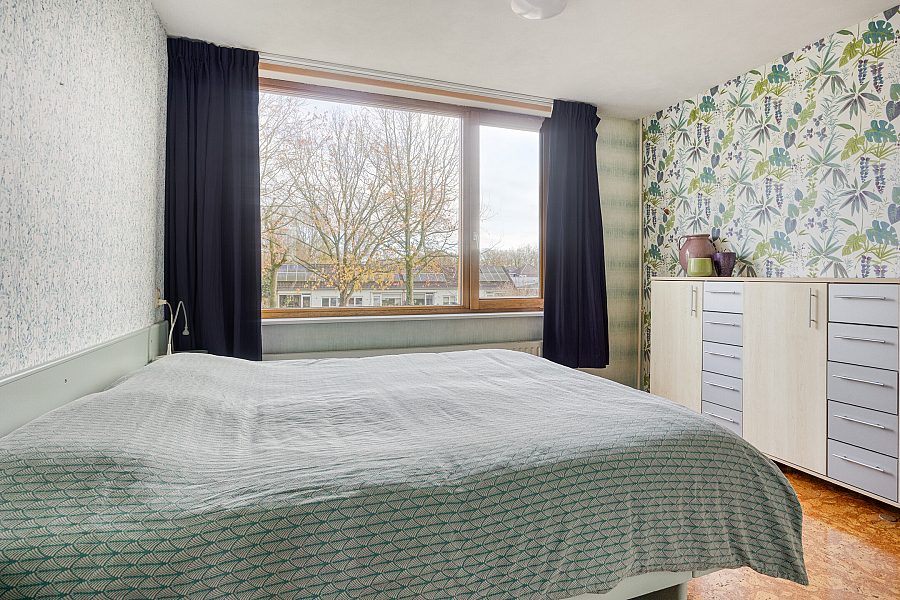 Ook op deze verdieping is de uitbouw doorgezet, wat zorgt voor extra ruimte. Overloop met royale inloopkast. Drie slaapkamers van circa 10 m², 11,5 m² en 13 m², waarvan twee zijn voorzien van een vaste kast. Moderne badkamer (2024) met douchecabine, wastafelmeubel, tweede toilet en designradiator.