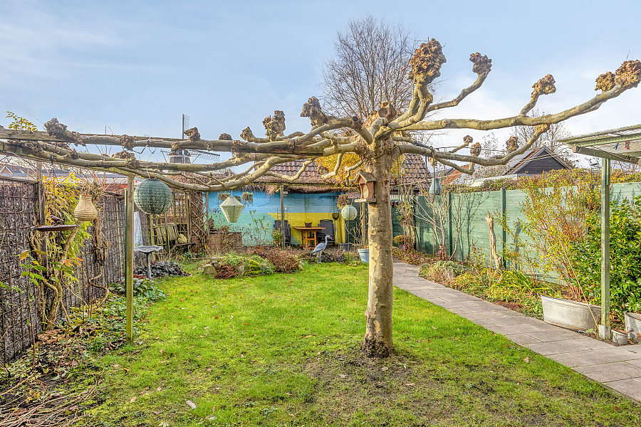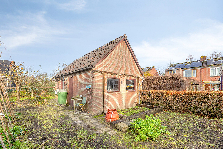 De totale perceeloppervlakte bedraagt maar liefst 420 m², bestaande uit meerdere kadastrale percelen. Naast de voor-, zij- en achtertuin met meerdere plekjes om te genieten van de zon en de tuin, is er aan de achterzijde een extra perceel grond met daarop een ruime schuur met vliering van circa 4,30 x 7,50 meter (ca. 32 m²). Ideaal voor klussen, tuinieren of het uitoefenen van een hobby!
