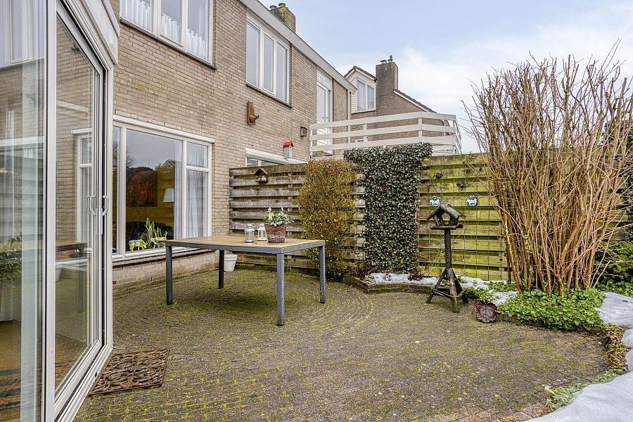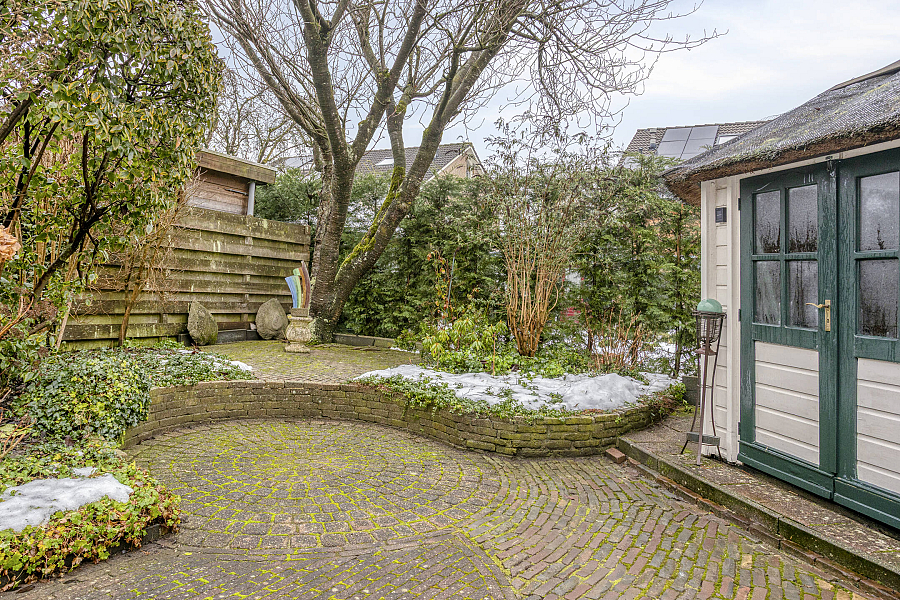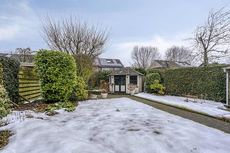 De diepe tuin is voorzien van een vrijstaande houten tuinberging en meerdere terrassen/zithoekjes. Hier is het heerlijk vertoeven!