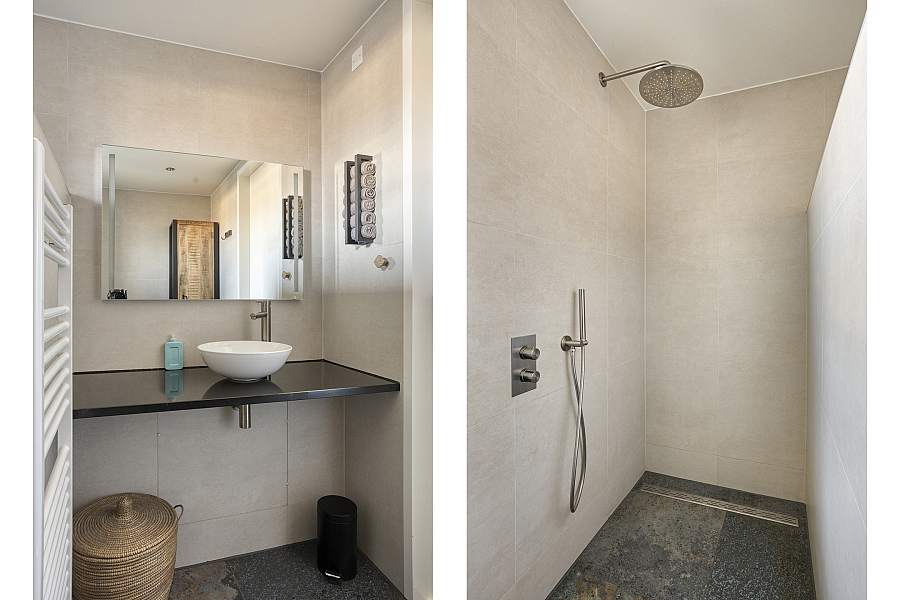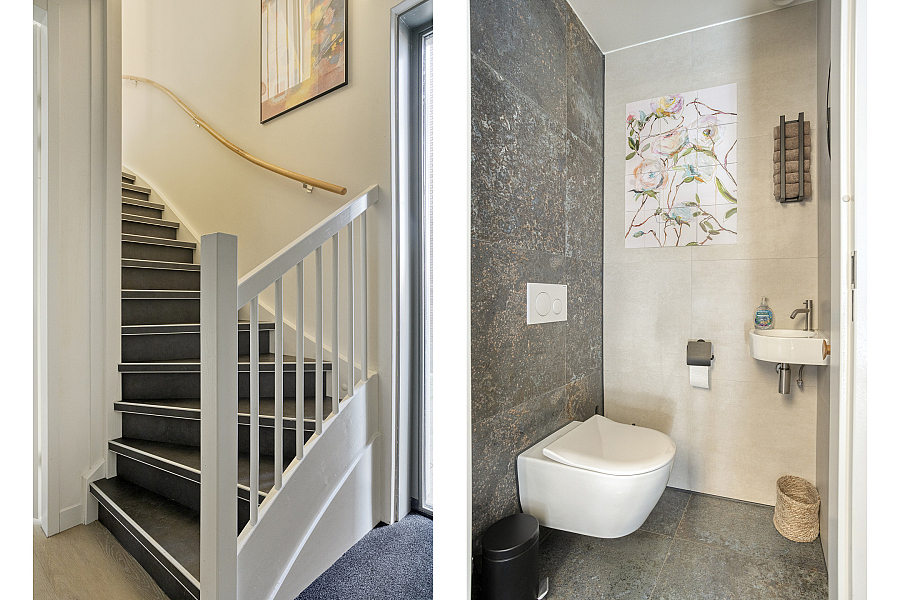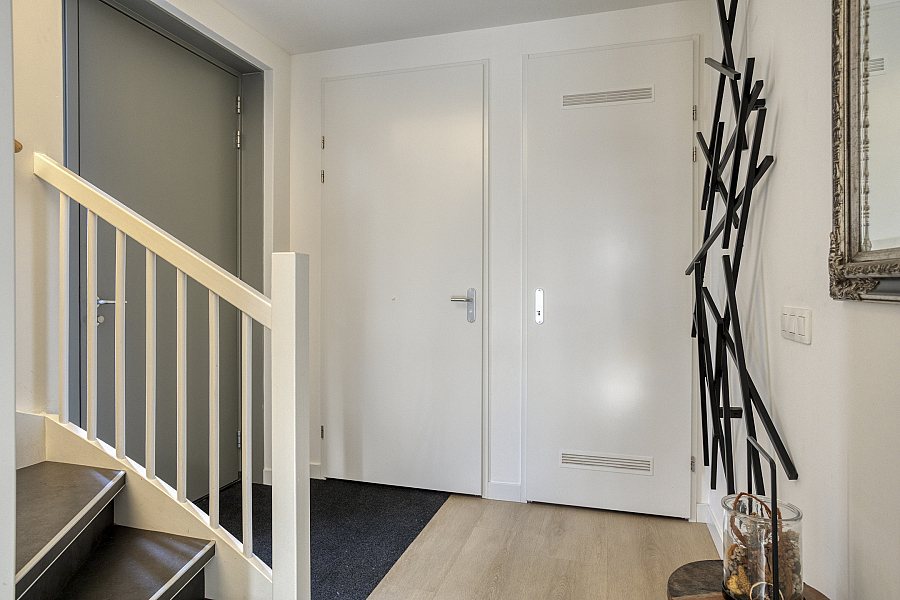 Op de eerste verdieping beschik je over drie comfortabele slaapkamers, waarbij de temperatuur per kamer afzonderlijk instelbaar is. De fraaie hoge deuren geven deze verdieping een luxe uitstraling. Daarnaast vind je hier een complete badkamer, uitgevoerd met vloerverwarming, een ruime inloopdouche, vaste wastafel en een tweede toilet – comfortabel en stijlvol afgewerkt.