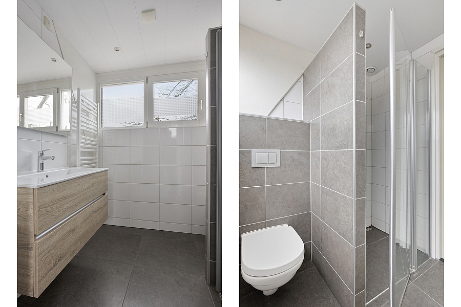 De zolderverdieping is voorzien van 2 prima slaapkamers en een moderne badkamer met ligbad, toilet, douche en wastafelmeubel. Tevens is hier voldoende bergruimte aanwezig.