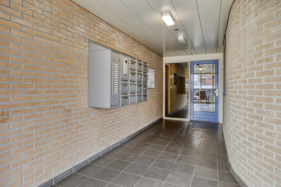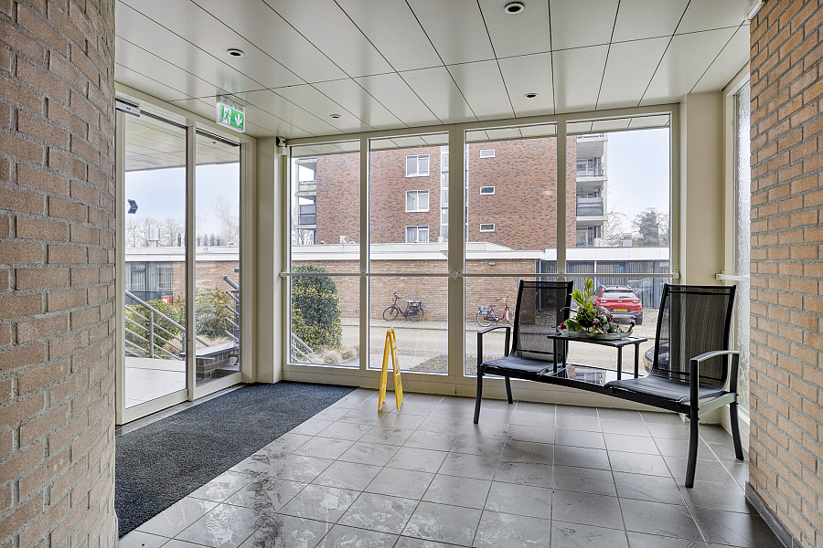 In de centrale entree bevinden zich de brievenbussen, een videofoon en deur naar de alleen voor bewoners toegankelijke lift -en portiekruimte. Veilig wonen gegarandeerd.