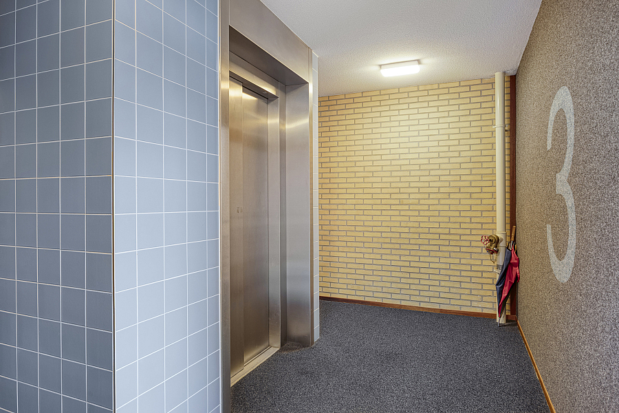 Het appartement is gelegen op de 3e verdieping van het appartementencomplex. Alle verdiepingen, ook de parkeerkelder en bergingen, zijn bereikbaar met de lift.