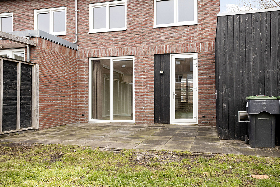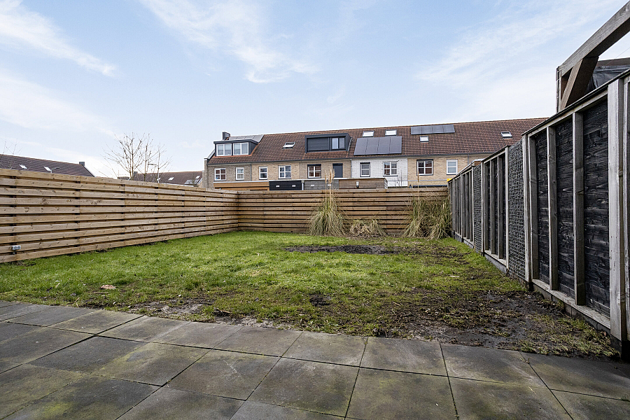 De achtertuin is ca. 17 meter diep, is gelegen op het zuidwesten en is ook via een achterom langs de garage bereikbaar.