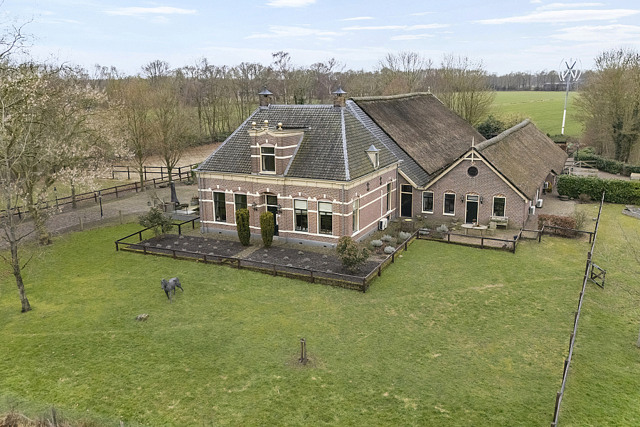 Vrijstaande herenboerderij (gemeentelijk monument) met 1,1 hectare grond – landelijk wonen op korte afstand van Meppel in het buurtschap Broekhuizen.