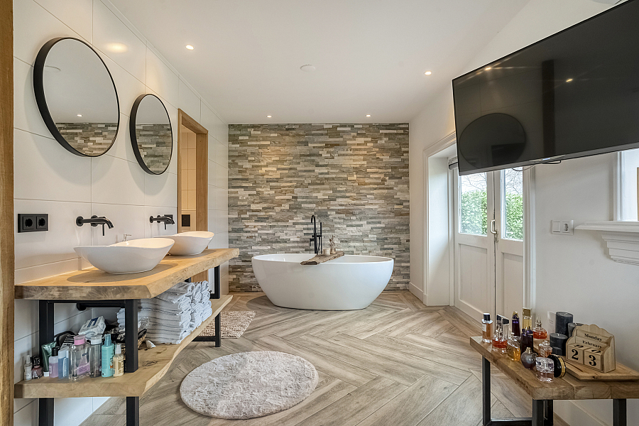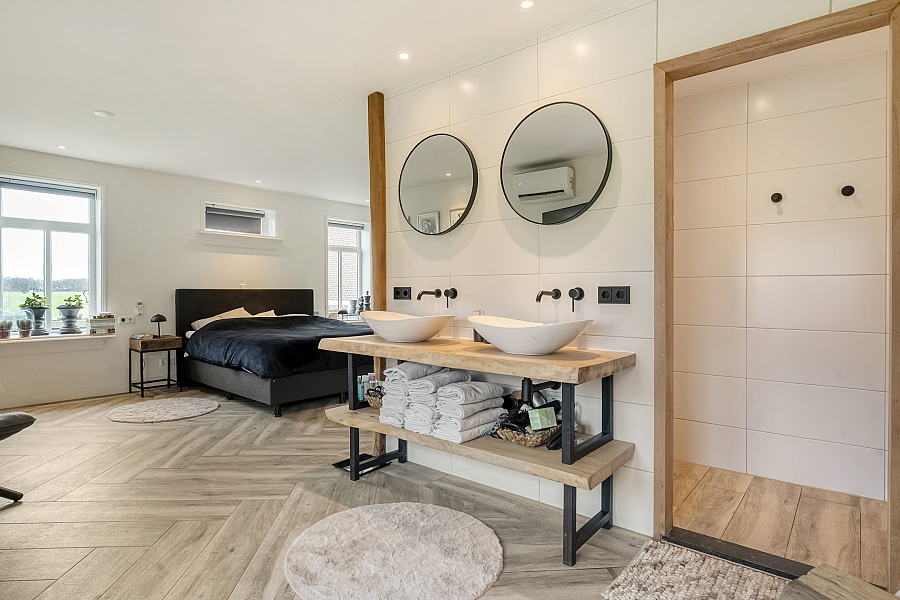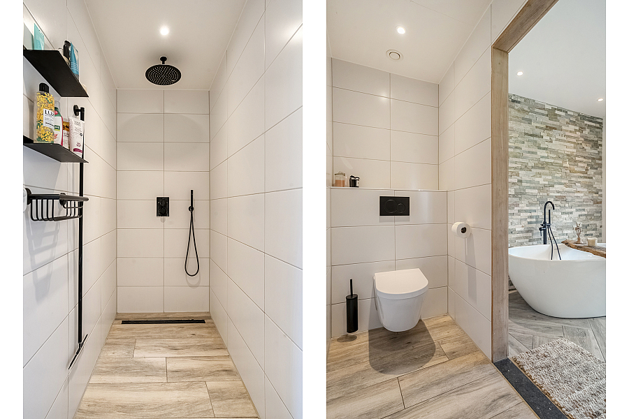 Vanaf de buitenzijde zijn nog 2 appartementen/gastenkamers bereikbaar, elk met eigen badkamer met wastafelmeubel, douche en toilet. Ideaal voor gasten, mantelzorg of B&B.