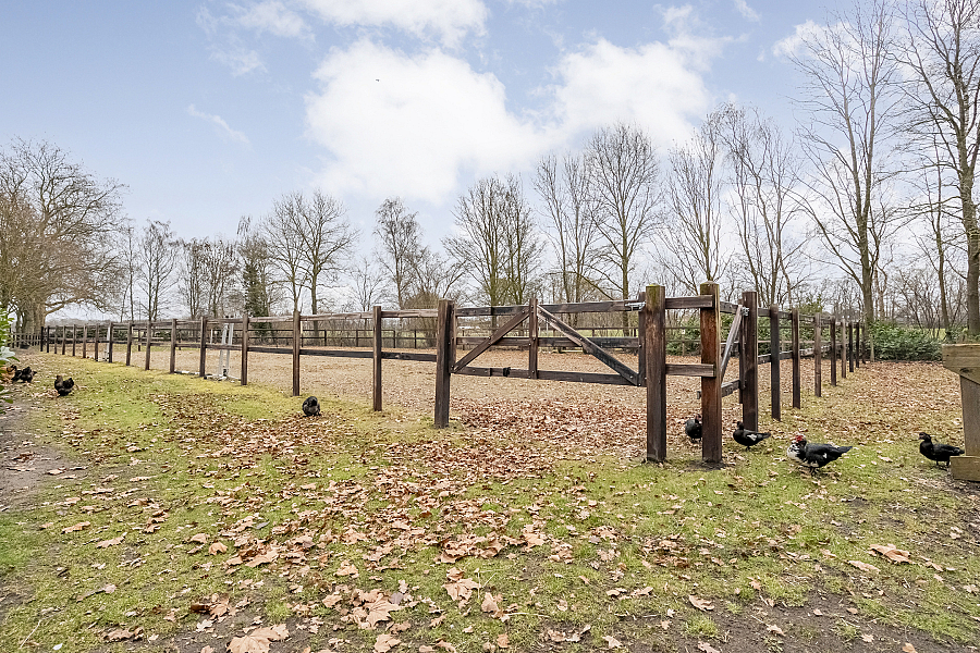 Het royale perceel van circa 1,1 hectare is vrijwel geheel omgeven door degelijk hardhouten hekwerk en ingericht voor optimaal buitenleven en paardenliefhebbers: