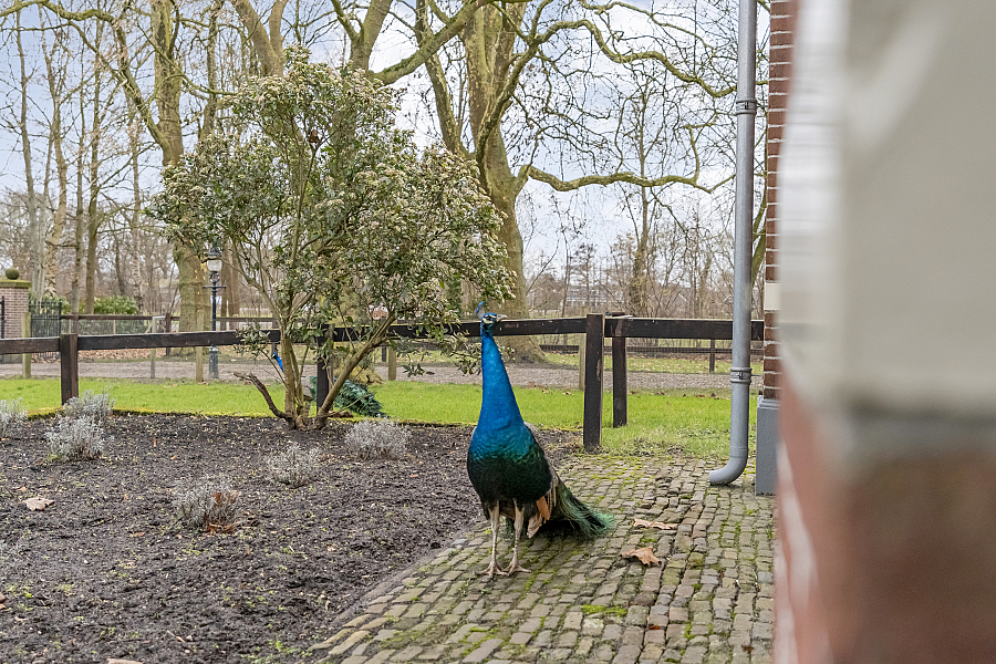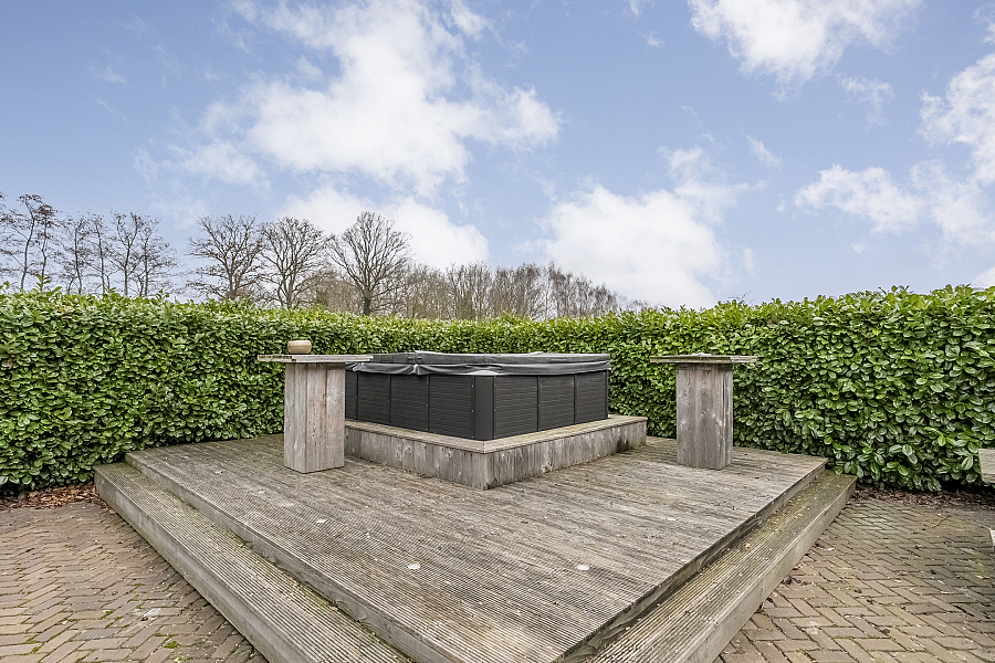 De fraai aangelegde siertuin beschikt over meerdere terrassen, een jacuzzi en een afgesloten gedeelte met een vijverpartij waar vogels zoals pauwen en eenden zich thuis voelen. Hier geniet u in alle privacy van rust, ruimte en natuur.