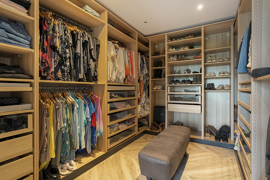 In het achterhuis bereikt u vanuit de centrale entree de praktische bijkeuken met vaste kastenwand en opstelplaats voor wasmachine en droger. Aansluitend bevindt zich de royale masterbedroom met airconditioning, inloopkast en een luxe badkamer en-suite voorzien van vrijstaand ligbad, dubbele wastafel, inloopdouche en toilet.