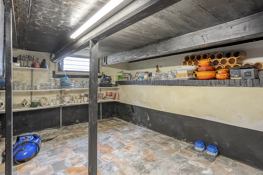 Vanuit de hal is er toegang tot een ruime provisiekelder, eveneens met estriken vloer.