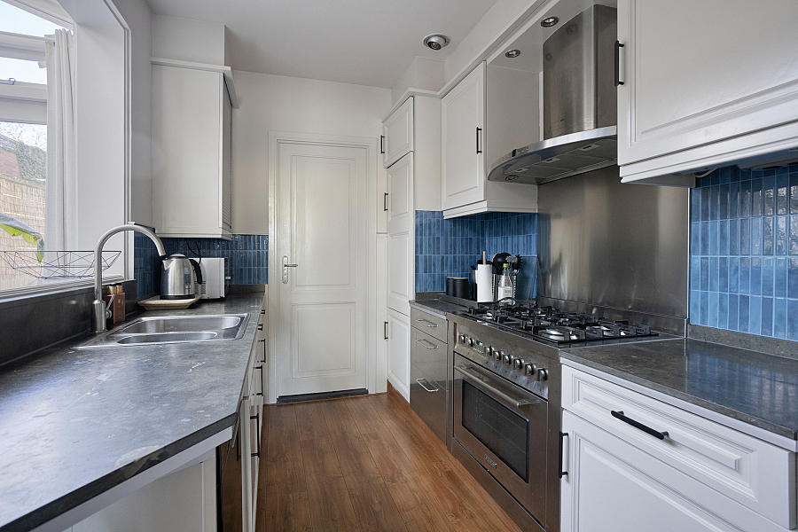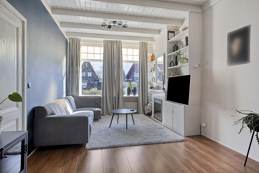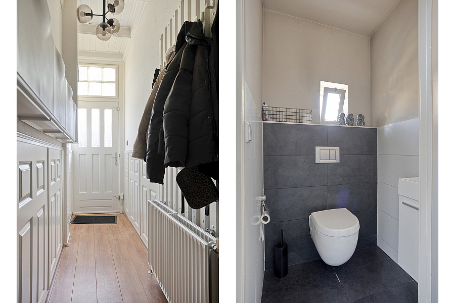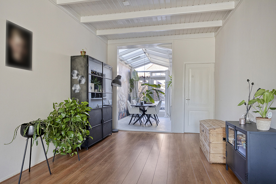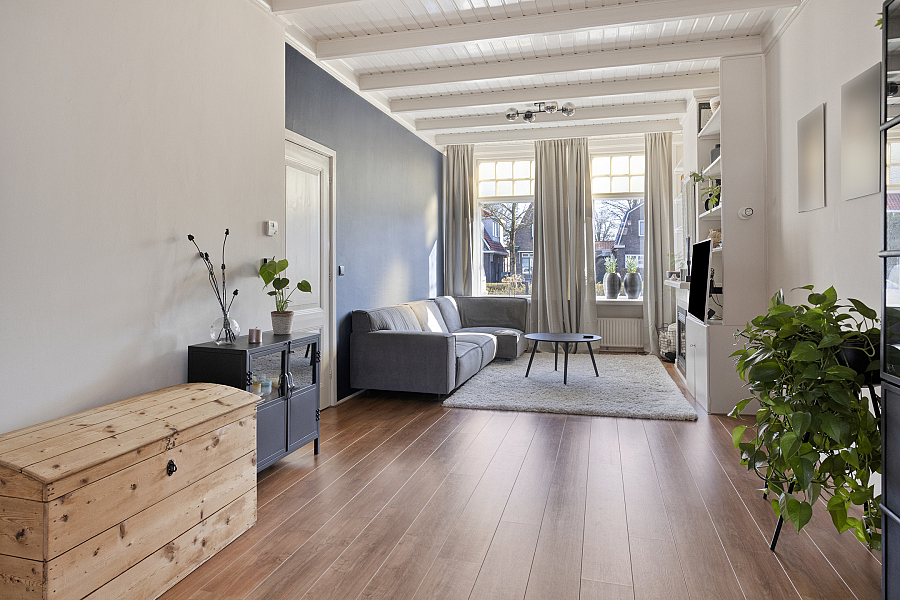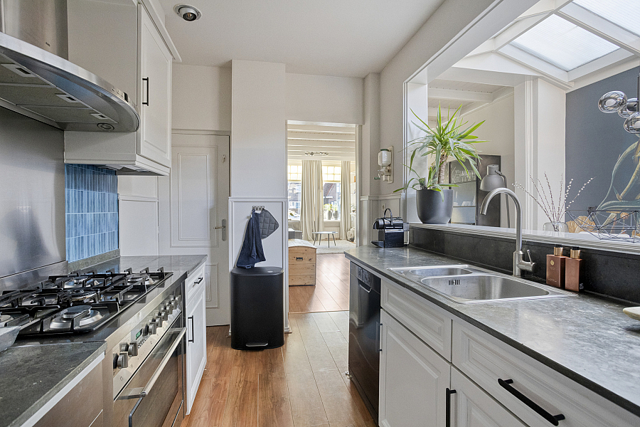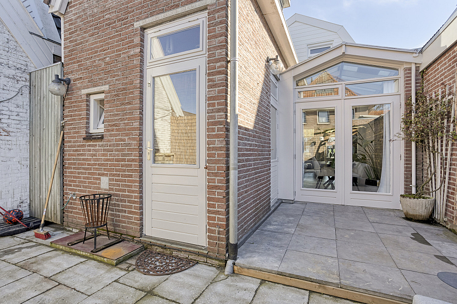 Entree/hal met trapopgang waaronder een praktische trapkast/provisieruimte, woonkamer met elektrische sfeerhaard, uitbouw (eet-/tuinkamer) met openslaande tuindeuren, halfopen keuken v.v. 5-pits gasfornuis met grote oven, koel-/vriescombinatie en vaatwasser (2025). Vanuit de keuken is er nog een kleine kelder bereikbaar, deze is droog en prima te gebruiken als provisieruimte. In de bijkeuken is er plaats voor wasmachine en droger. Hier treft men ook het toilet v.v. fontein en is de cv (2014) geïnstalleerd. In de achtertuin, gesitueerd op het westen en met veel privacy, is het genieten van de zon. Via de achtertuin is er nog een royale 2e kelder bereikbaar. Deze kelder kan gebruikt worden als hobbyruimte. Via de eigen (overdekte) steeg kan men achterom.