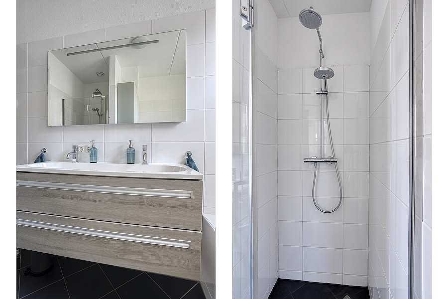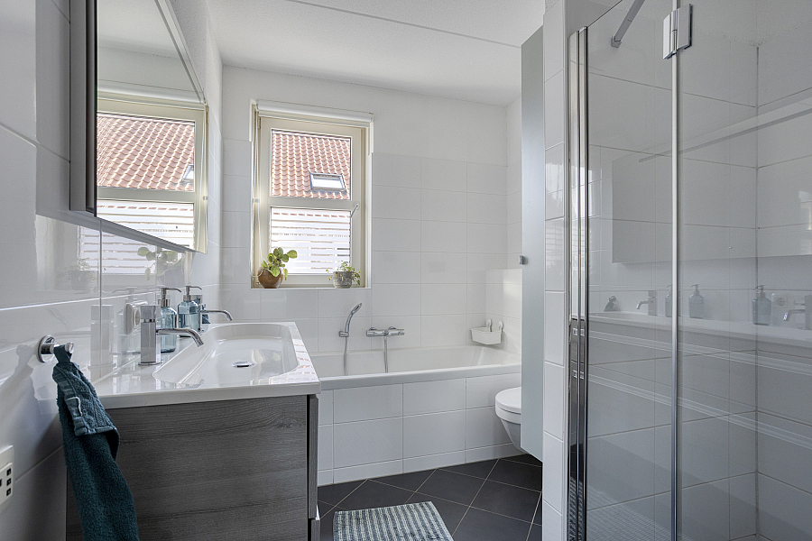 Op de eerste verdieping bevinden zich drie ruime slaapkamers. De nette badkamer is compleet uitgerust met een douche, ligbad, toilet en een dubbel wastafelmeubel.