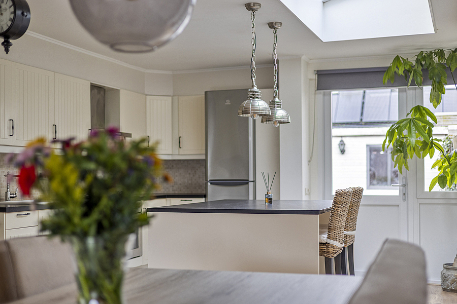 - Royale, uitgebouwde woonkeuken met kookeiland en bar