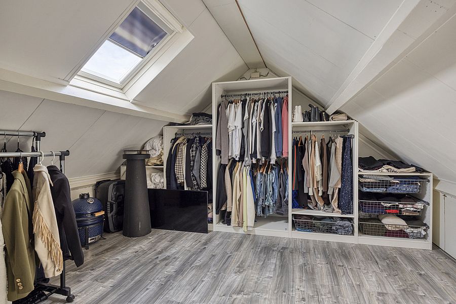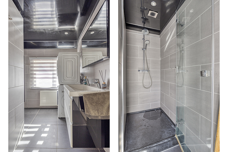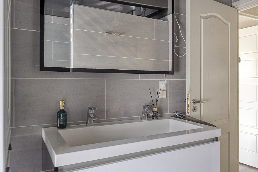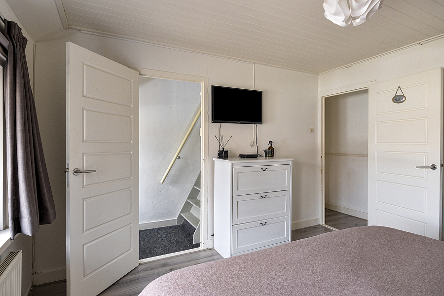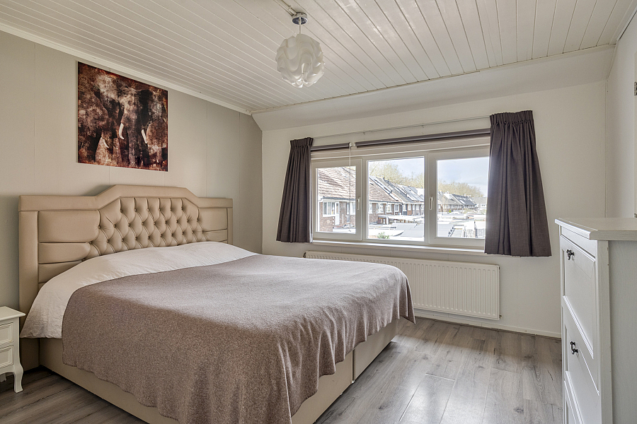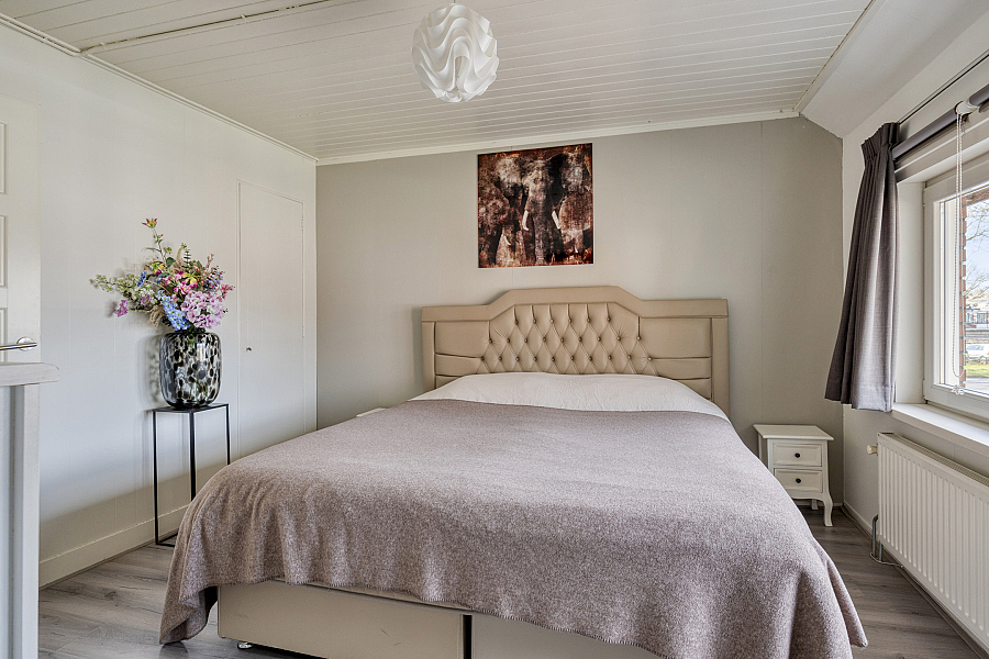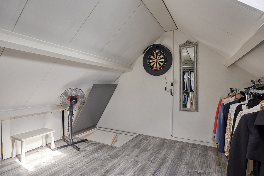 Op de eerste verdieping vind je twee keurige slaapkamers en een nette badkamer. Deze is compleet ingericht met een inloopdouche, dubbele wastafel en een aansluiting voor de wasmachine. De grote slaapkamer biedt via een vaste trap toegang tot de zolderverdieping. Deze ruimte is momenteel multifunctioneel en biedt de mogelijkheid om een derde slaapkamer te realiseren.