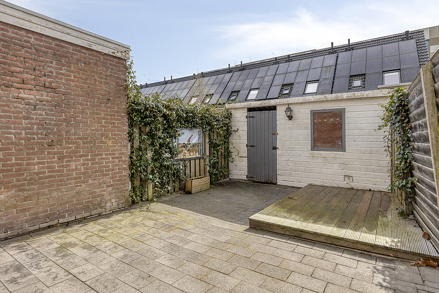 Vanuit de woning stap je de knusse achtertuin in, gelegen op het zonnige zuidwesten. Hier kun je heerlijk genieten van de middag- en avondzon. De tuin beschikt over een houten berging en een praktische achterom.