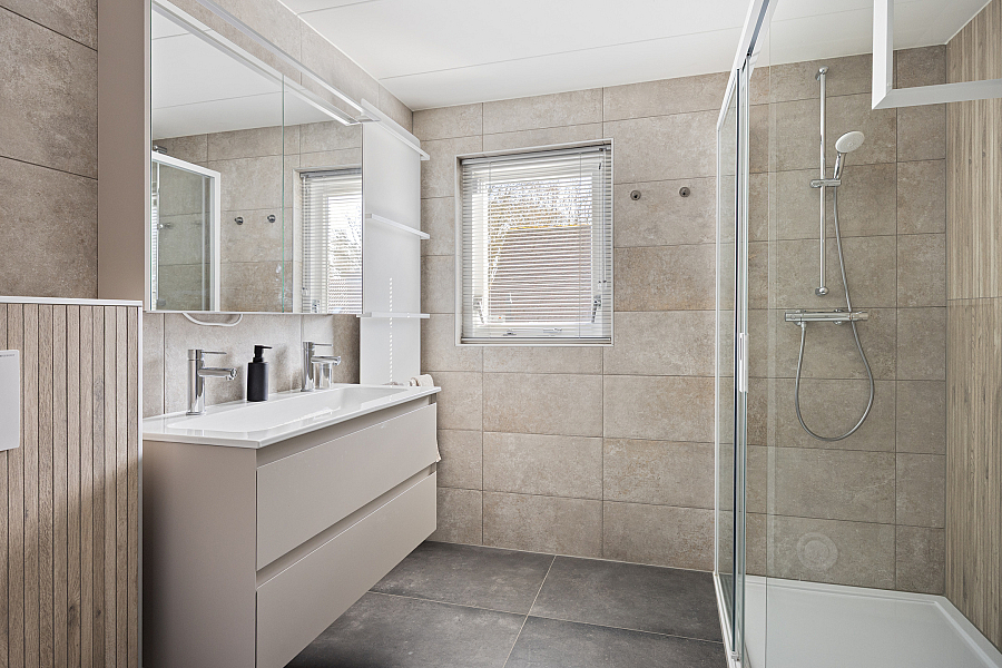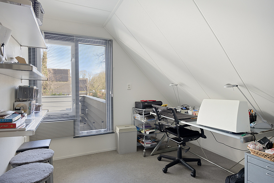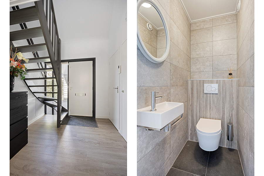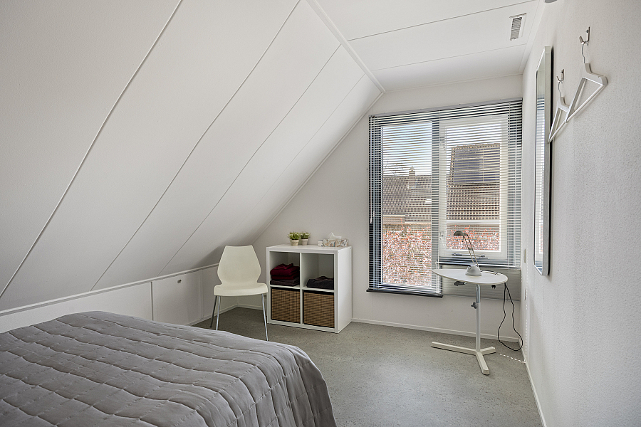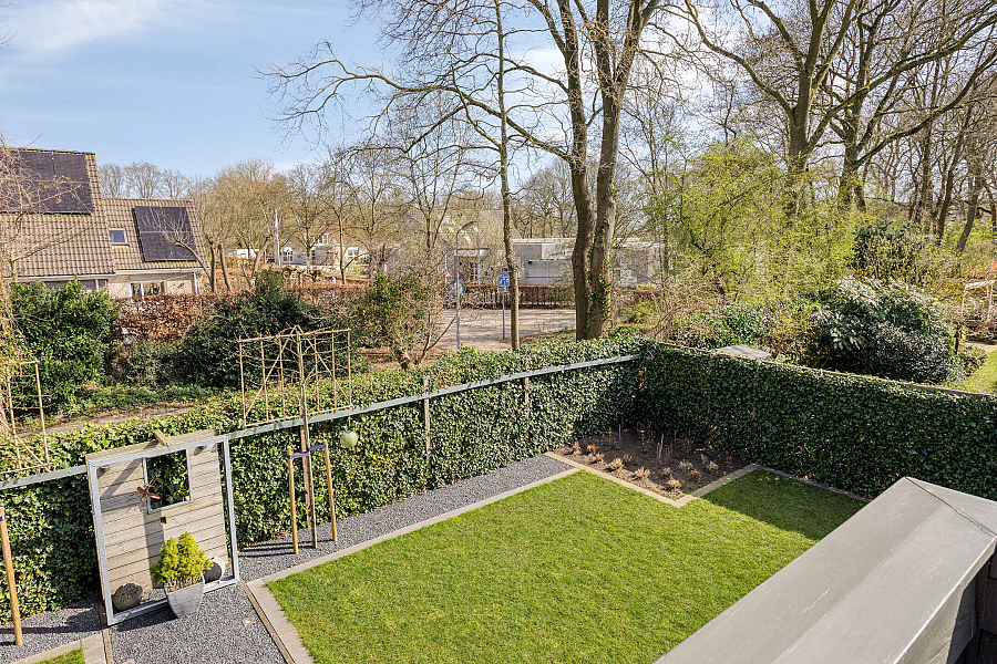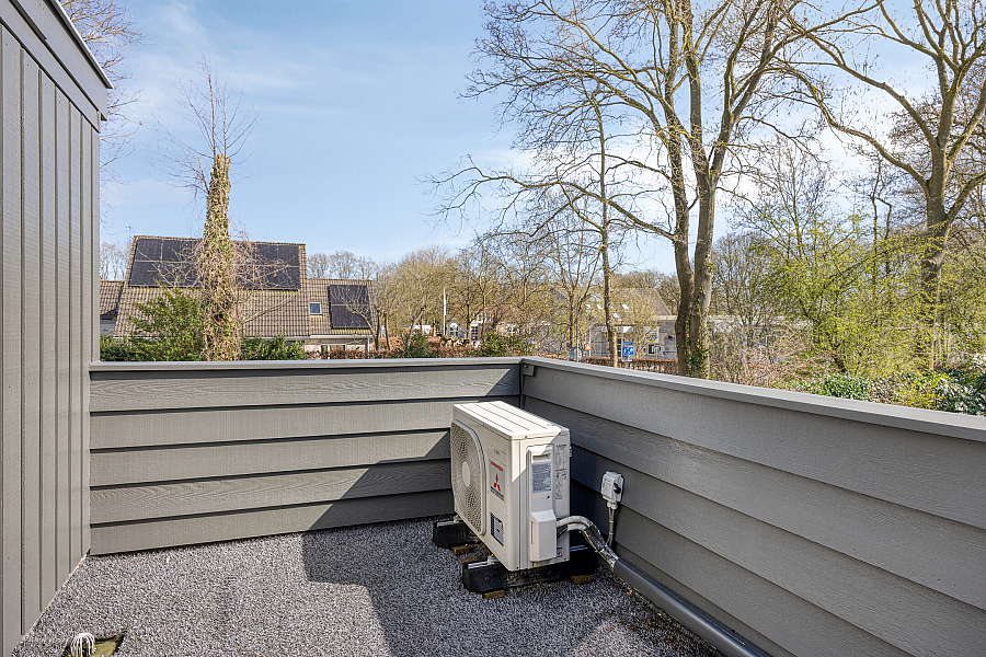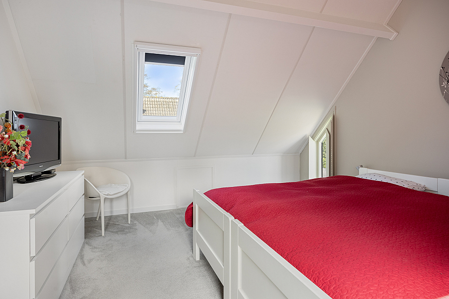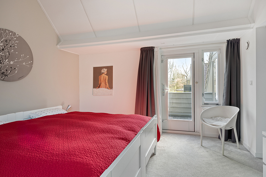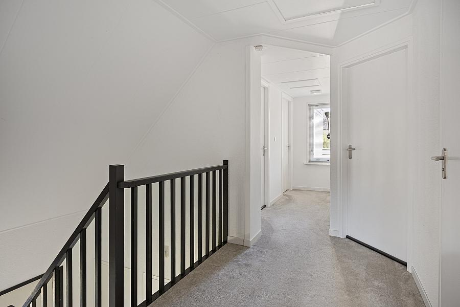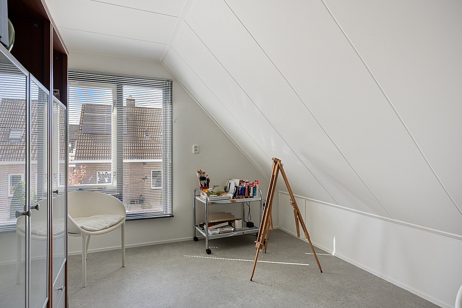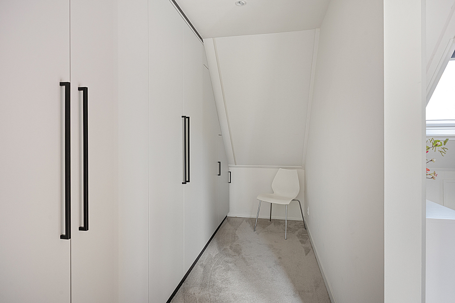 Eerste verdieping: ruime overloop met aan de voorzijde twee slaapkamers. Via een tussenhal met maatwerk kastenwand bereik je de royale master bedroom met toegang tot het dakterras. Daarnaast is er een vierde slaapkamer/berging met een speelse indeling. De in 2024 vernieuwde badkamer is luxe uitgevoerd met een brede dakkapel, extra grote douche, dubbel wastafelmeubel, hangkast en tweede toilet.