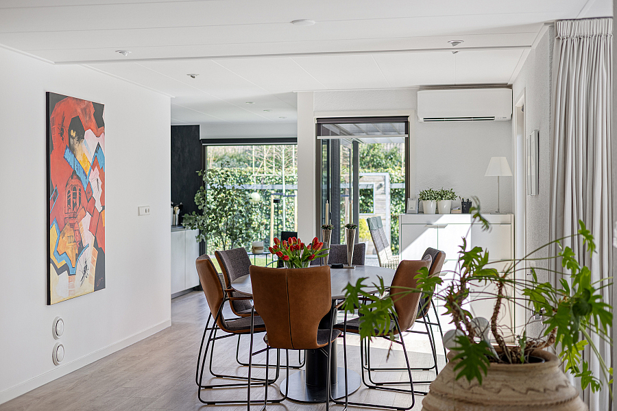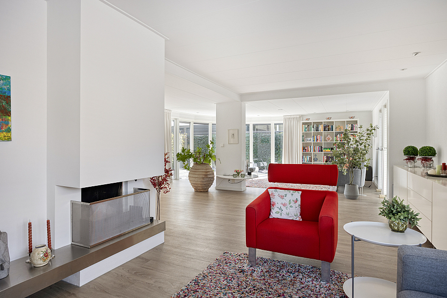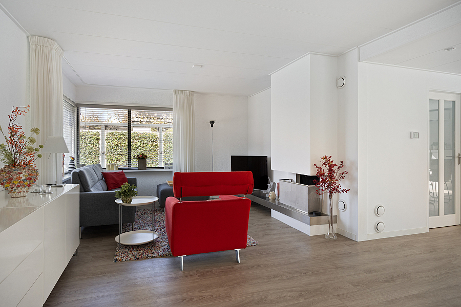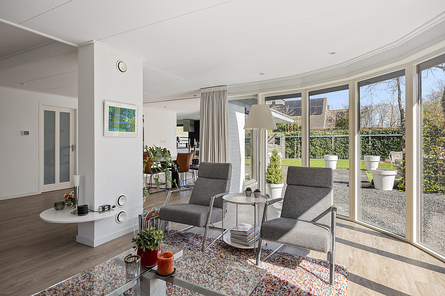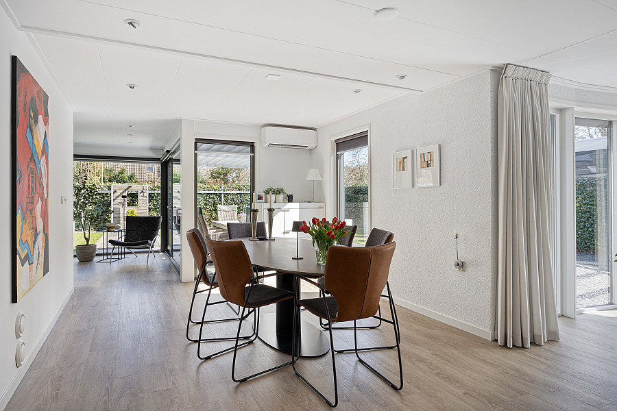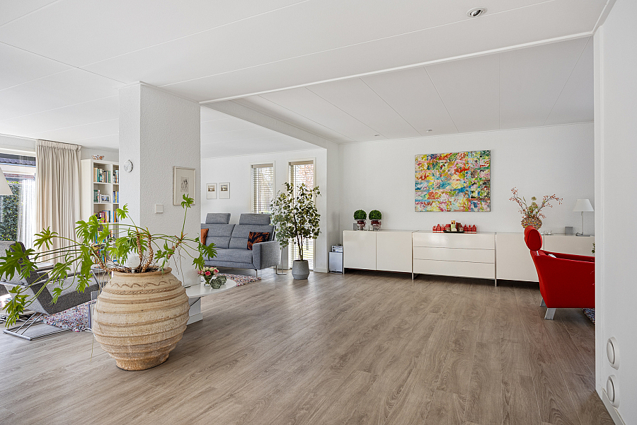 De woning kenmerkt zich door de royale leefruimtes en de prettige lichtinval. De combinatie van een ruime woonkamer met serre, een moderne woonkeuken en een praktische indeling maakt dit een ideaal gezinshuis. Grote raampartijen en de schuifpui zorgen voor een open en lichte sfeer, waarbij binnen en buiten mooi in elkaar overlopen.