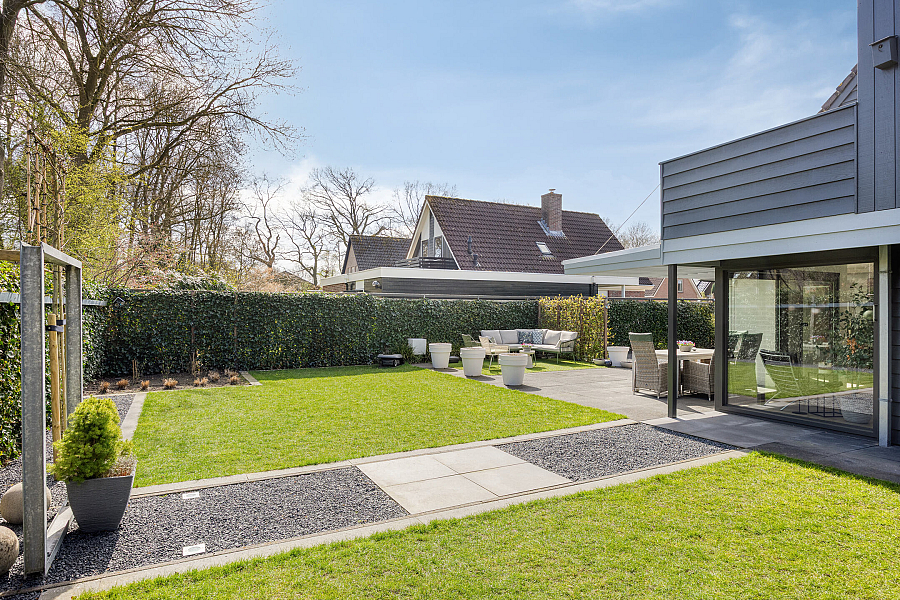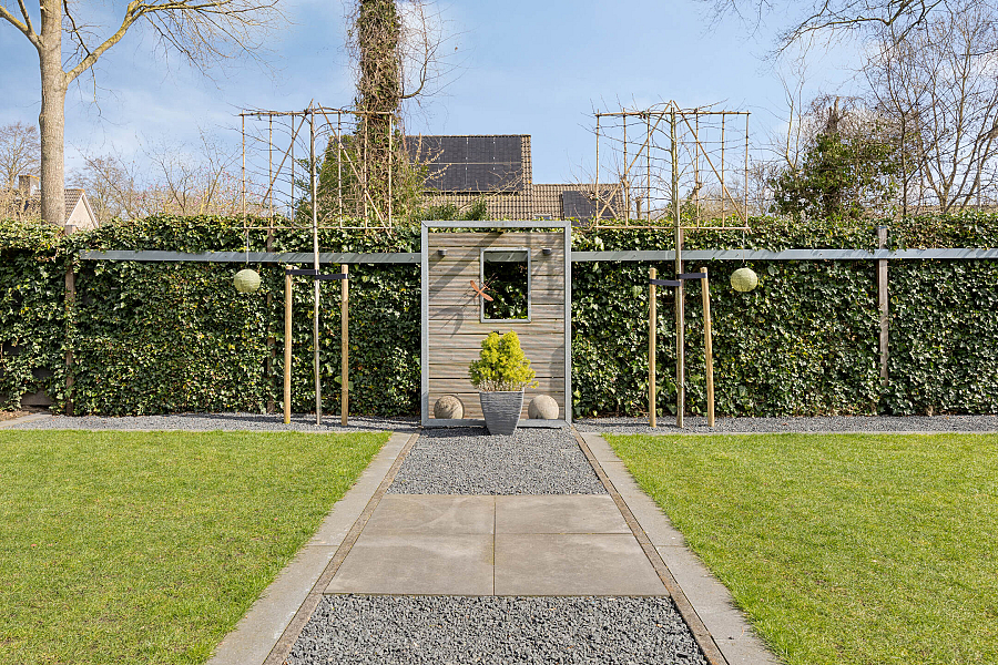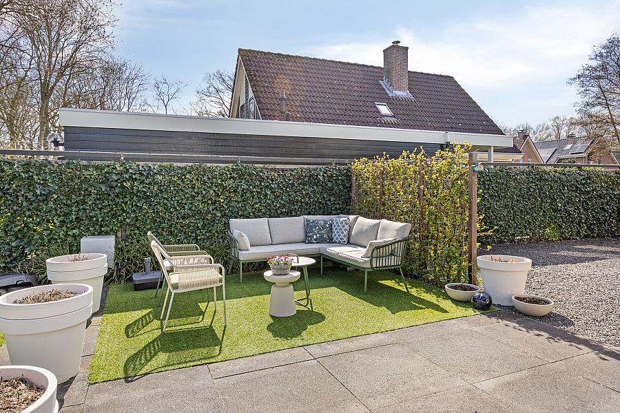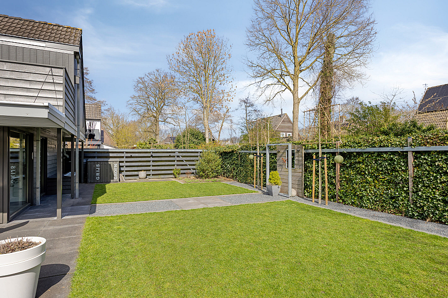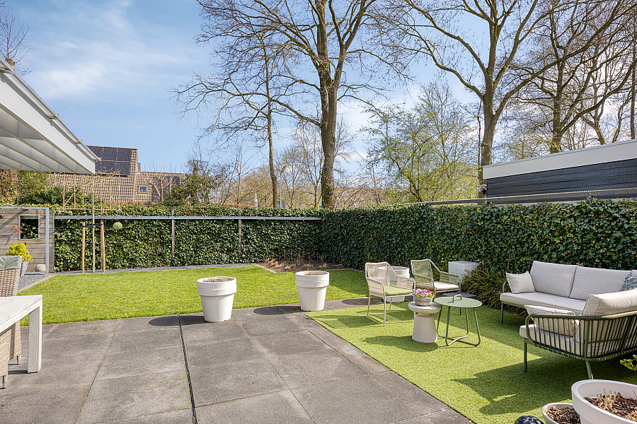 De tuin is fraai en vrij gelegen op het oosten en grenst aan een groenstrook, wat zorgt voor veel privacy en een groen uitzicht. Hier kun je in alle rust genieten van het buitenleven!