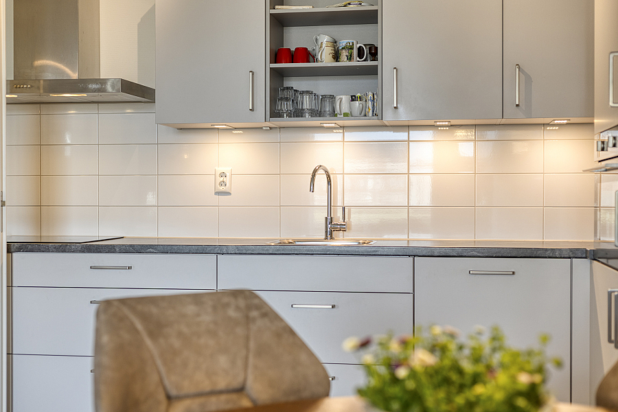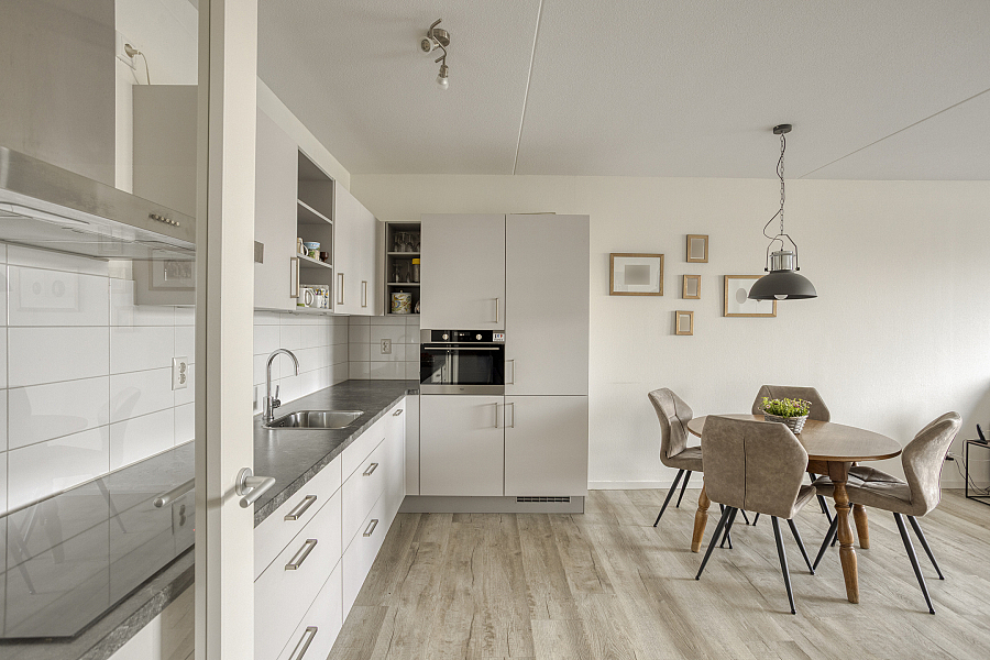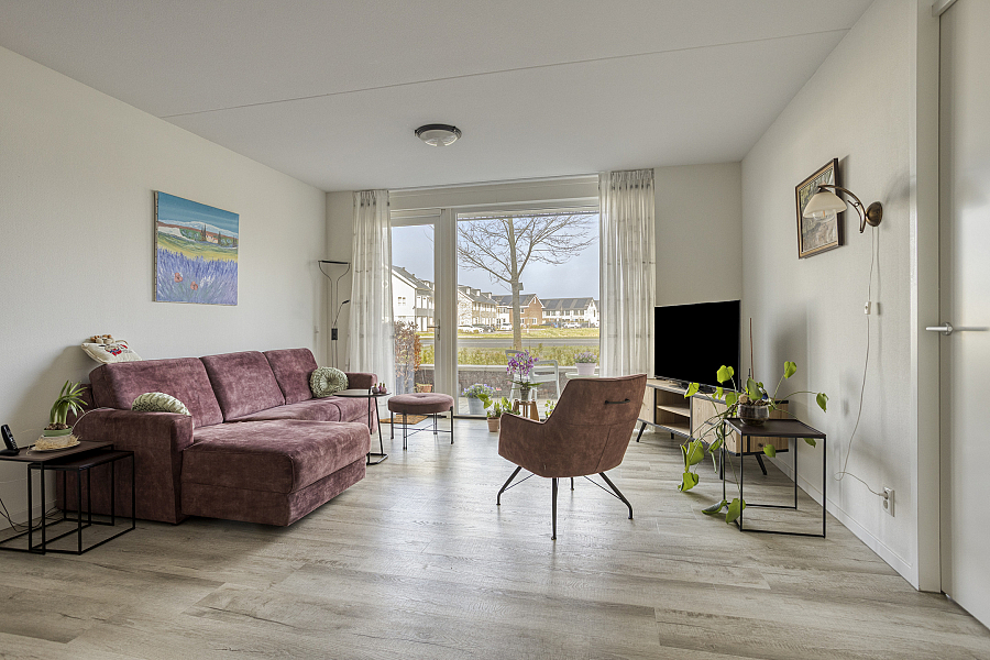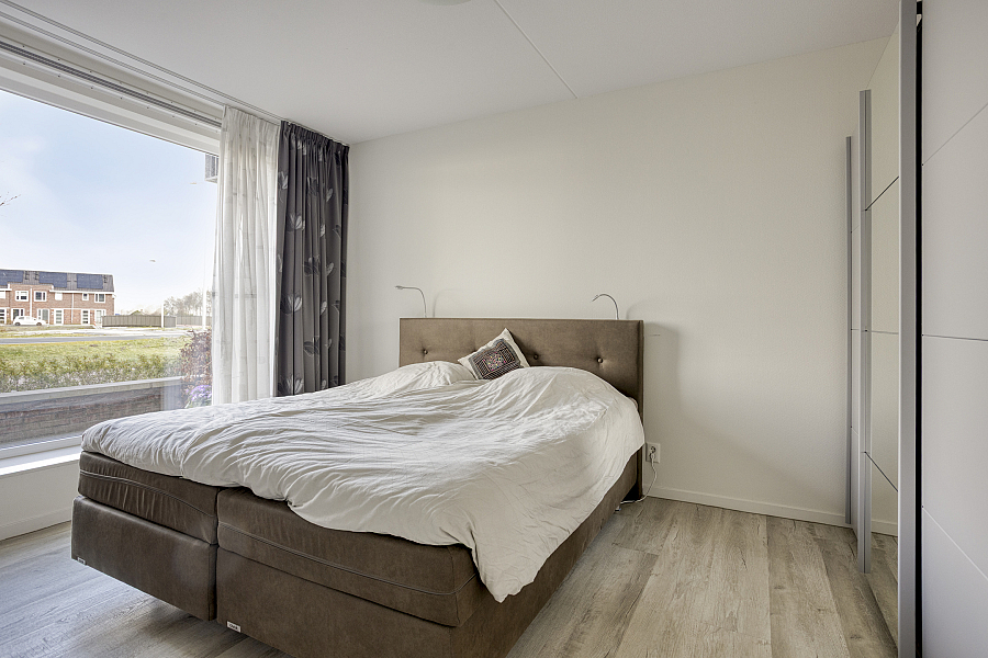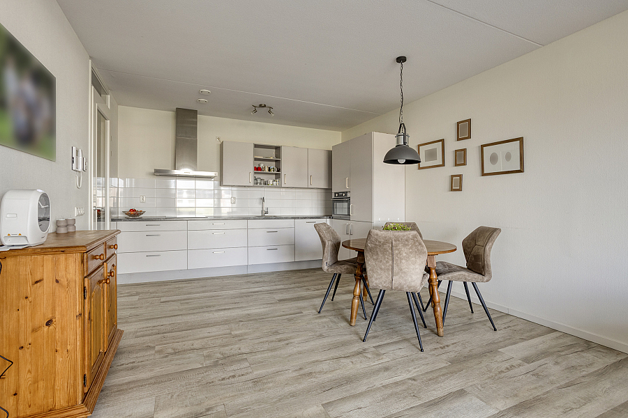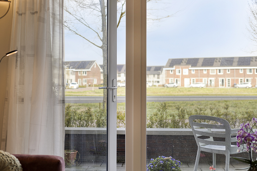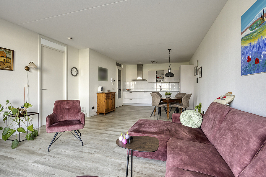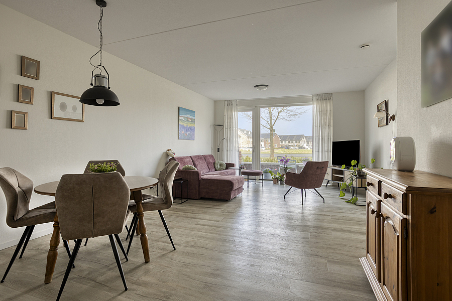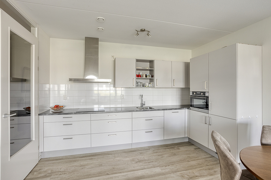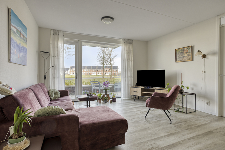 De lichte woonkamer met grote raampartijen voelt direct prettig aan en staat in open verbinding met de moderne keuken, die van alle gemakken is voorzien. Vanuit de woonkamer loop je zo het ruime terras op het noordwesten op een heerlijke plek om na een lange dag nog even van de zon te genieten.