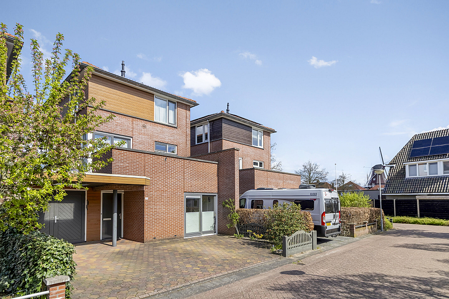 De moderne vormgeving van de in 2000 gebouwde watervilla’s past uitstekend in de 30-er jaren omgeving die de woonwijk kenmerkt. U kunt uw auto parkeren op uw eigen terrein of in de aangebouwde garage.
