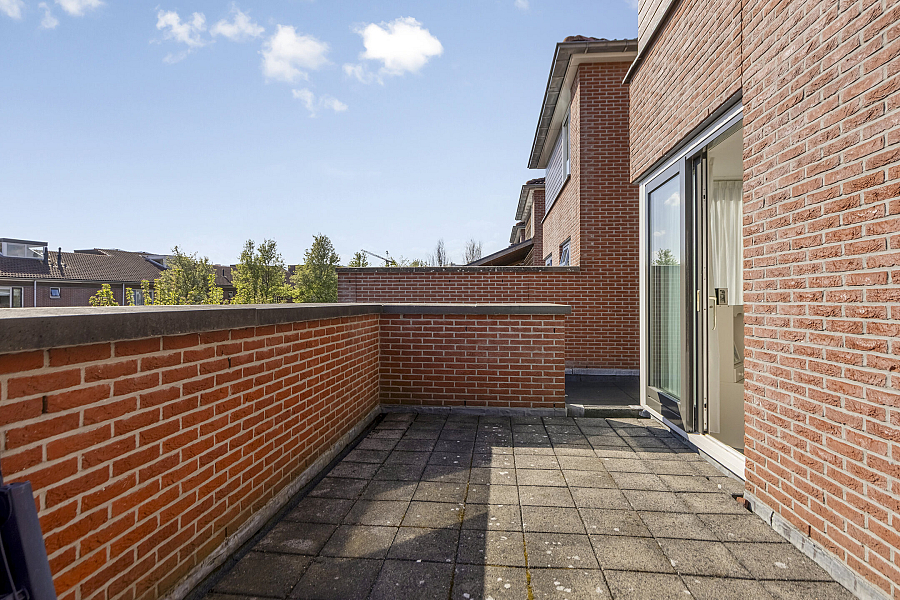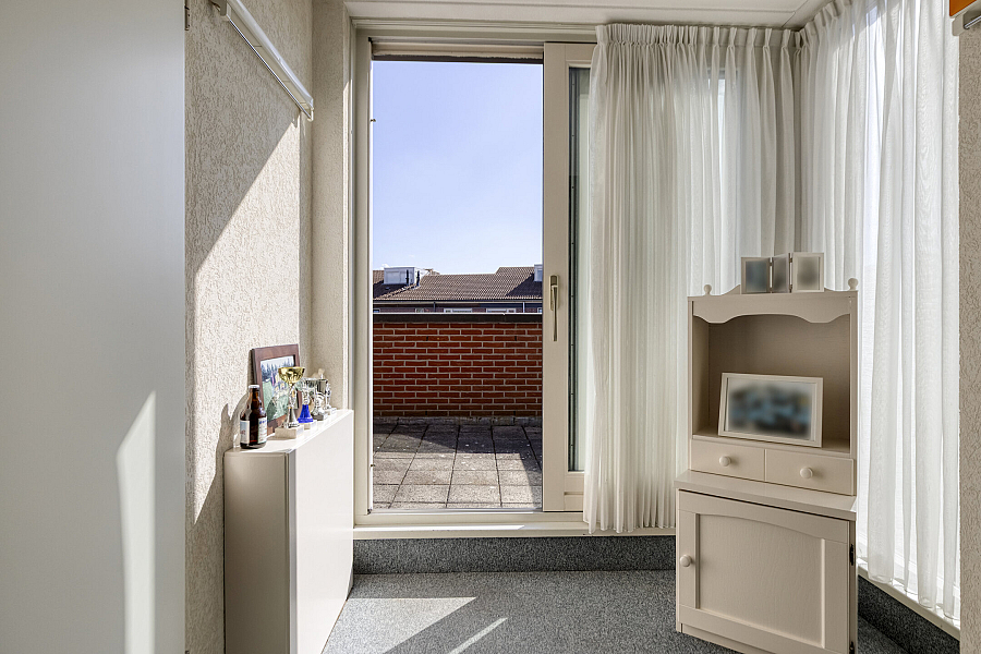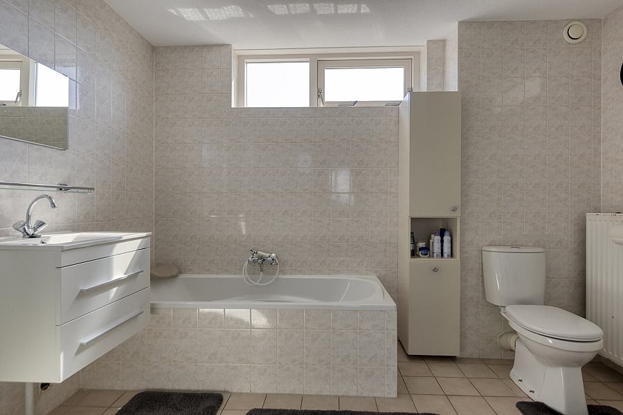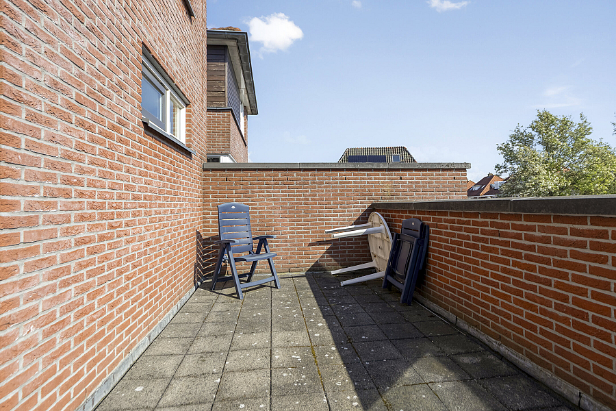 Overloop met praktische werkhoek, 2 slaapkamers, comfortabele, zeer royale badkamer met ligbad, douchecabine, 2e toilet en badmeubel, vanuit de overloop biedt een schuifpui toegang tot een zonnig dakterras.