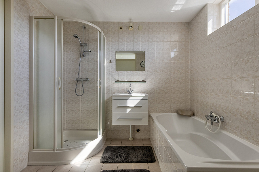 Overloop, 2 slaapkamers (eventueel extra kamer te realiseren), 2e badkamer met douche, toilet en een wastafel, cv-ruimte.