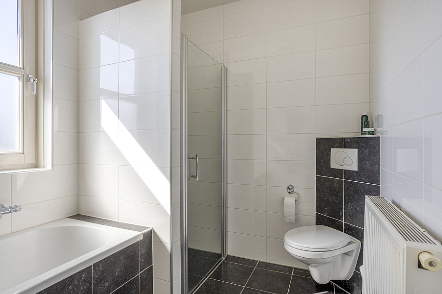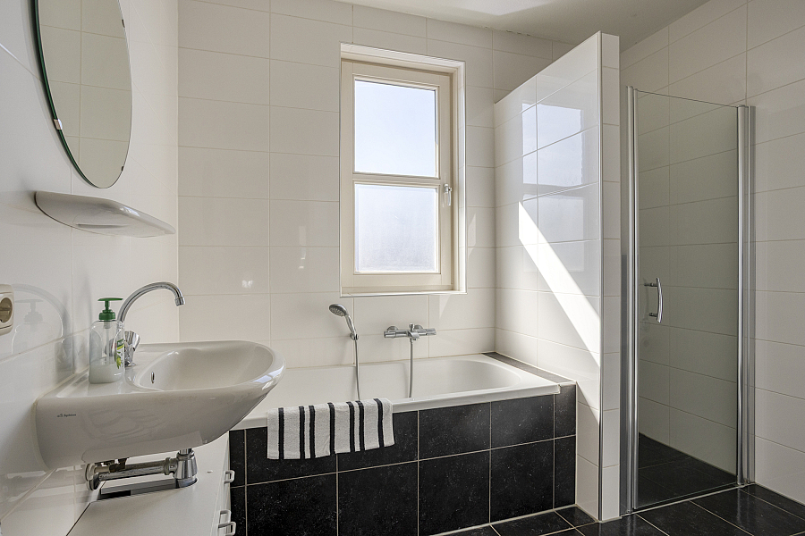 Op de eerste verdieping bevinden zich drie ruime slaapkamers en een nette, complete badkamer. Deze is uitgerust met een inloopdouche, ligbad, toilet, wastafel en radiator.