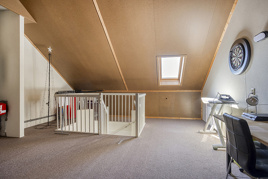 De tweede verdieping biedt volop mogelijkheden. Dankzij de ruime opzet en het aanwezige Velux dakraam is hier eenvoudig een vierde slaapkamer te realiseren. Daarnaast vind je hier de in 2024 geplaatste ATAG cv-ketel, de mechanische ventilatiebox en praktische knieschotten voor extra bergruimte.